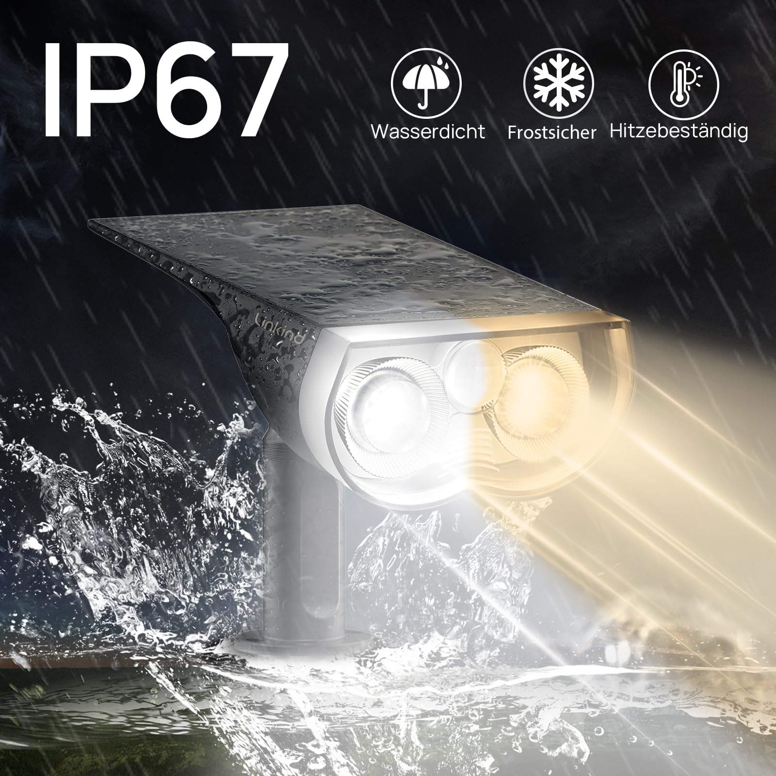 Linkind 800Lm Aussen Solarleuchten mit Bewegungsmelder, 3000K Warmweiss 22-LED Solar Gartenleuchte mit 2 Modi, 2-in -1montage, IP65 StarRay2 Garten Solarstrahler für Eingang, Weg, Haustier, 4 Stück