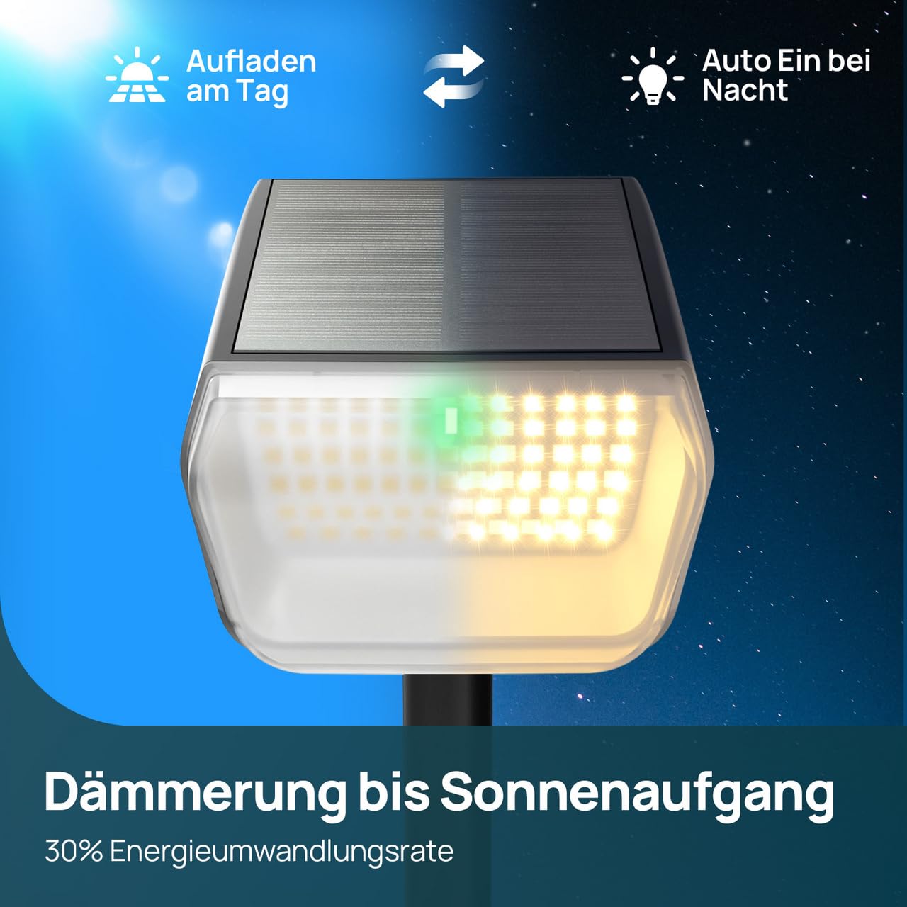 Linkind Solar Pathway Spotlights, SP004 Dusk-to-Dawn 3000K Solar Outdoor Garden Lights with Winter Mode, Warmweiss IP67 Waterproof Wall Lights for Garden Yard Driveway Porch Walkway, 6-Pack
