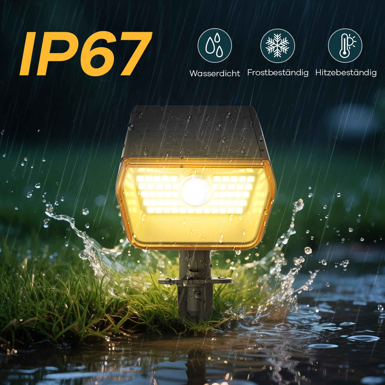 Linkind Solar Strahler Aussen mit Bewegungsmelder 3000K & 6500K, 60-LEDs Aussen Gartenstrahler mit Dauerlicht und Lade-anzeige, IP67 Wasserdicht Solar Wegelampen 8M/120°Erfassungsbereich, 3 Stück