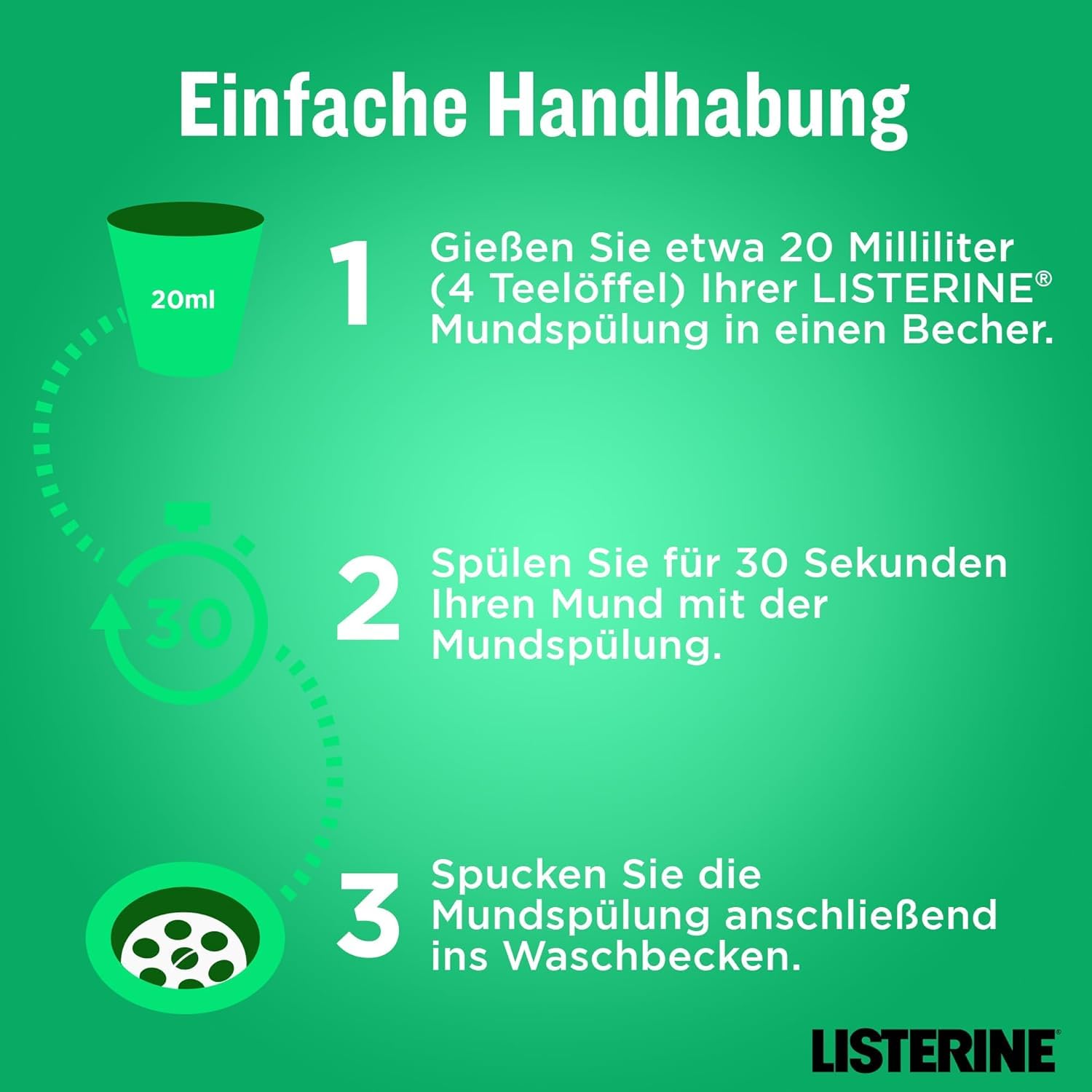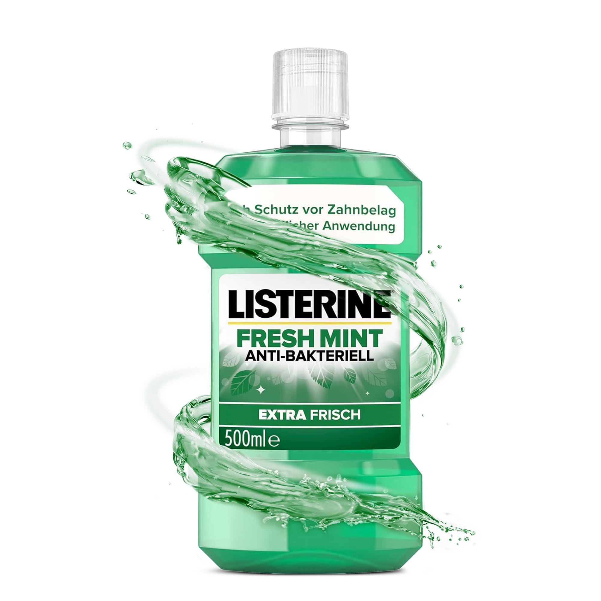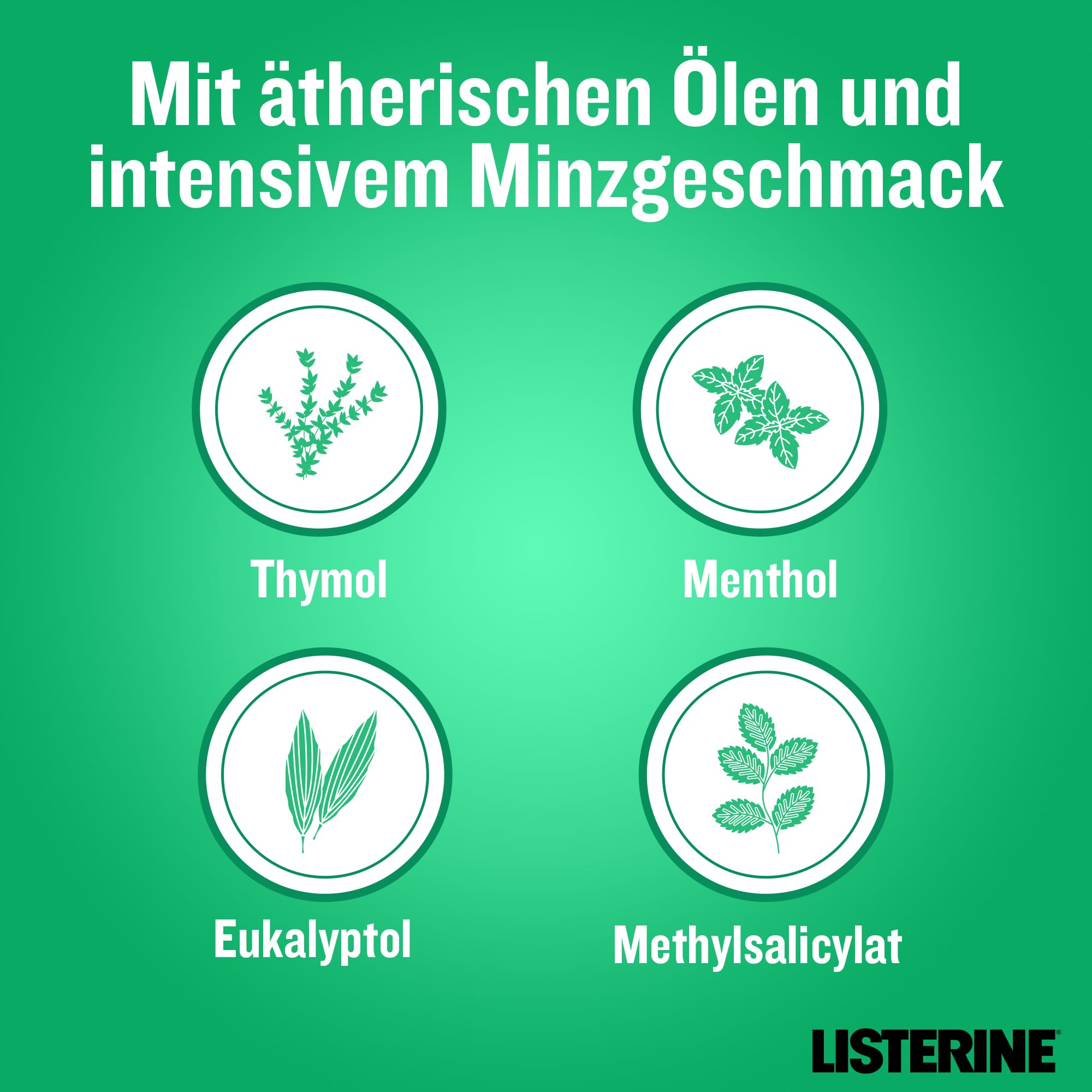 Listerine Fresh Mint antibakterielle Mundspülung für frischen Atem, mit ätherischen Ölen, bekämpft Mundgeruch verursachende Bakterien, mit frischem Minzgeschmack