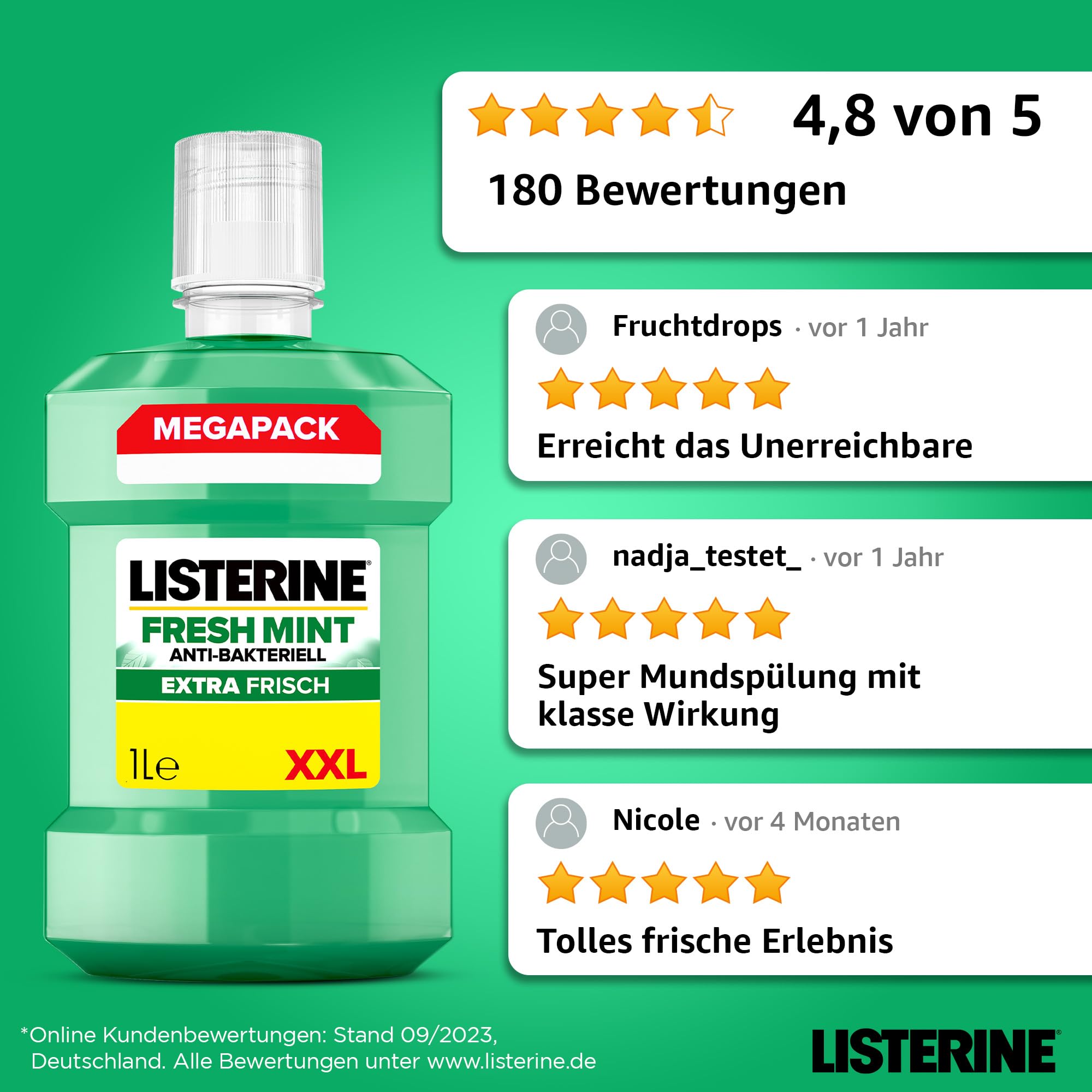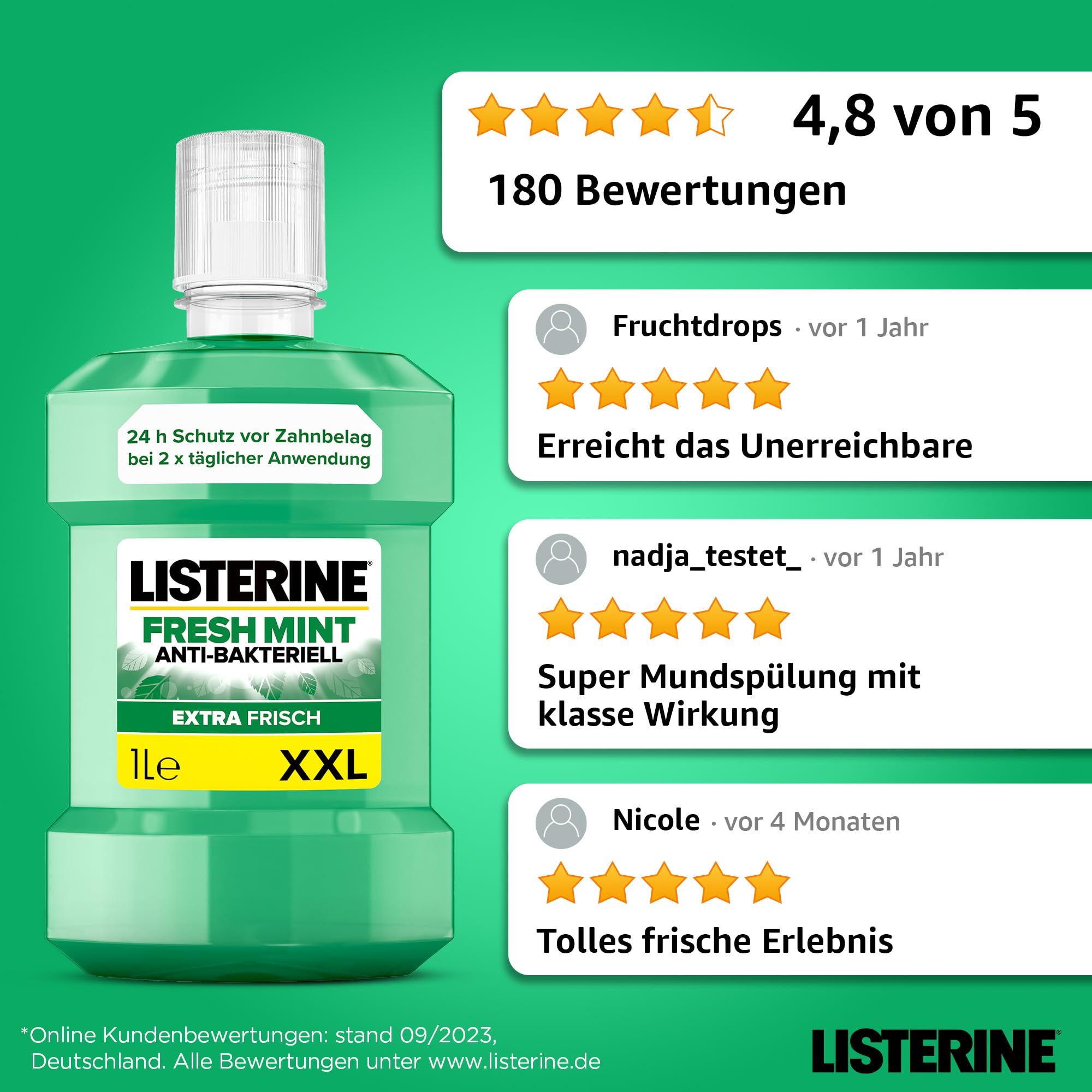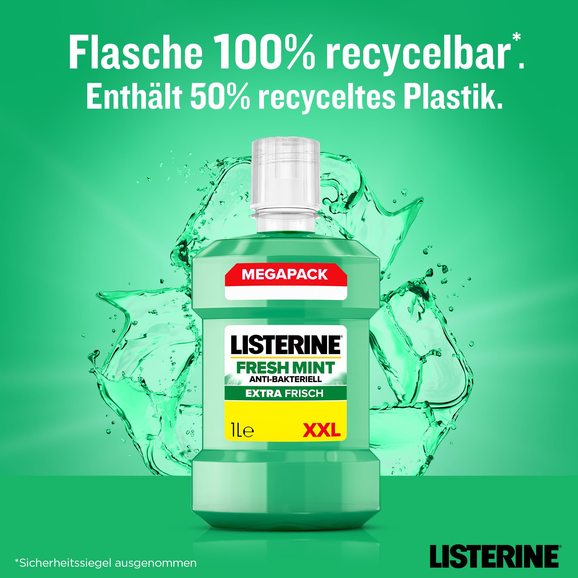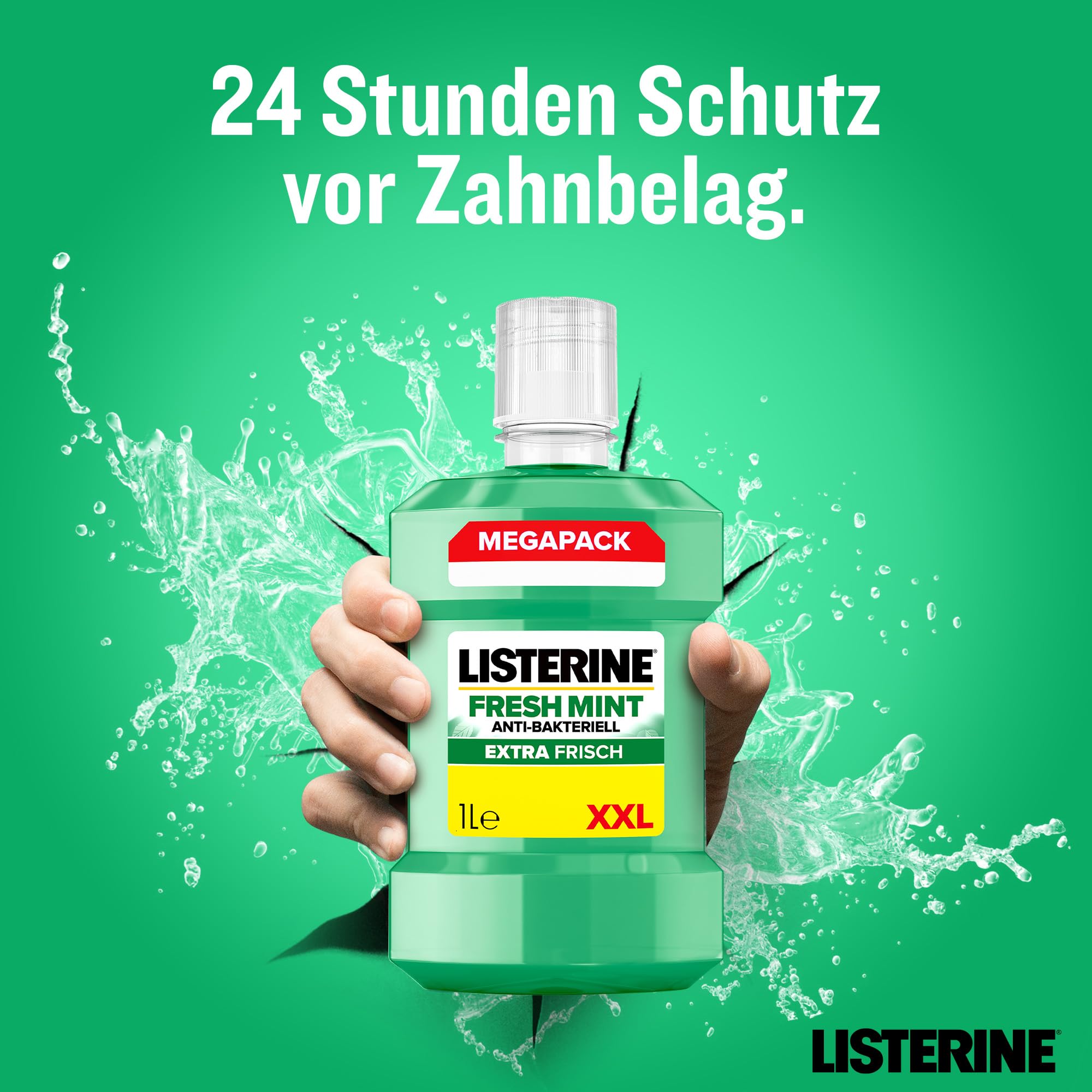 LISTERINE Fresh Mint 1000 ml, antibakterielle Mundspülung mit ätherischen Ölen für einen frischen Atem, Mundwasser reduziert wirksam Zahnbelag und Mundgeruch