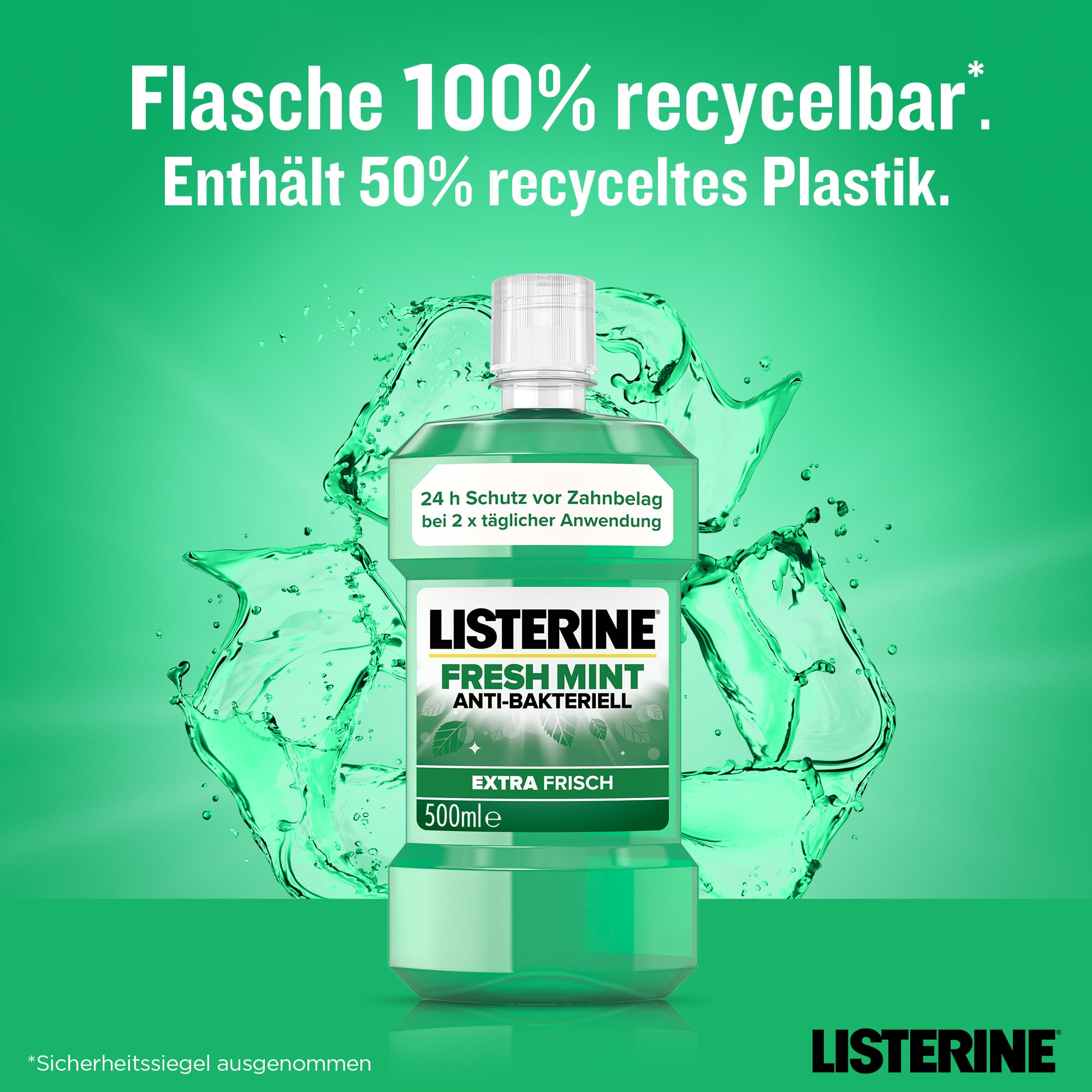 LISTERINE Fresh Mint (6 x 500 ml), antibakterielle Mundspülung mit ätherischen Ölen für einen frischen Atem