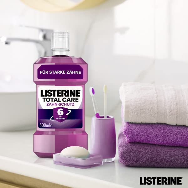 LISTERINE Total Care Zahn-Schutz 500 ml - Testsieger Stiftung Warentest, 6 in 1 Wirkung, 24h frischer Atem, schützt gegen Karies und Zahnfleischprobleme, antibakterielles Mundwasser (Packung mit 2)