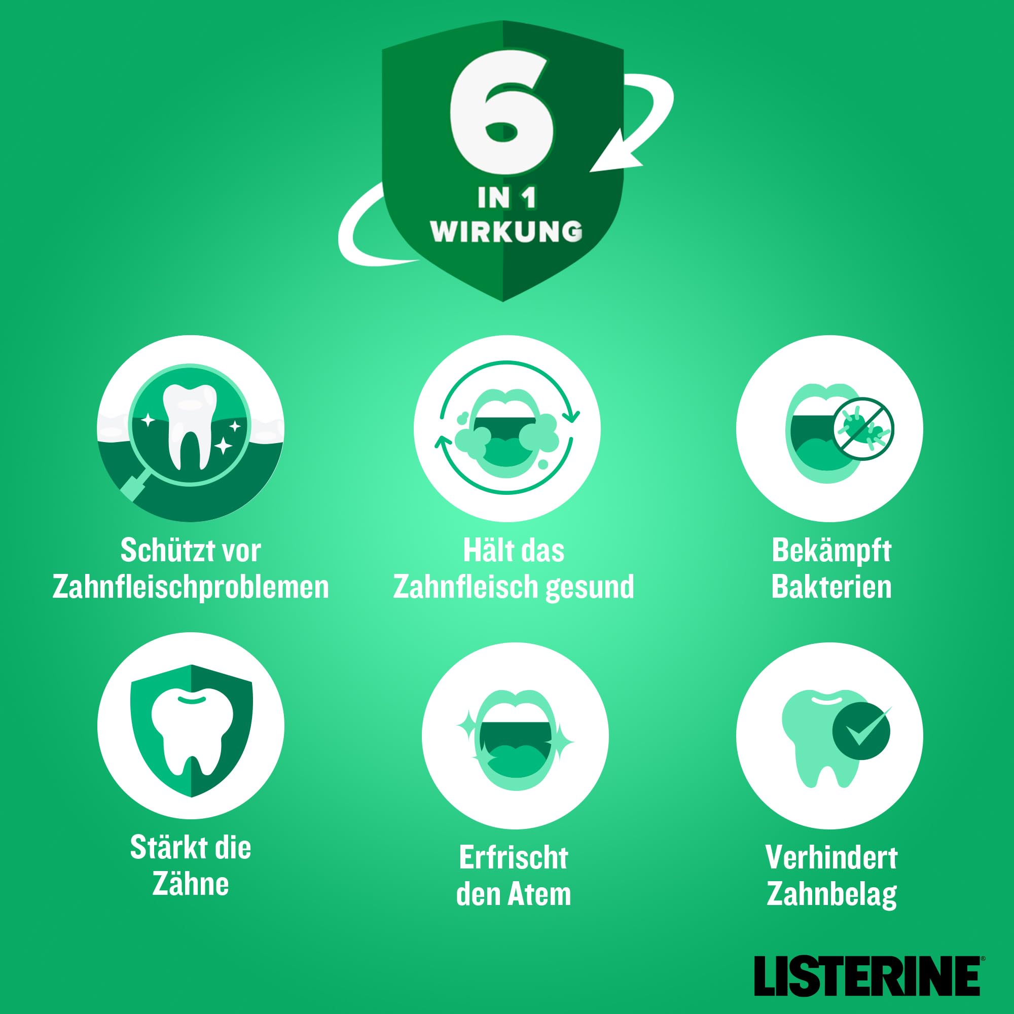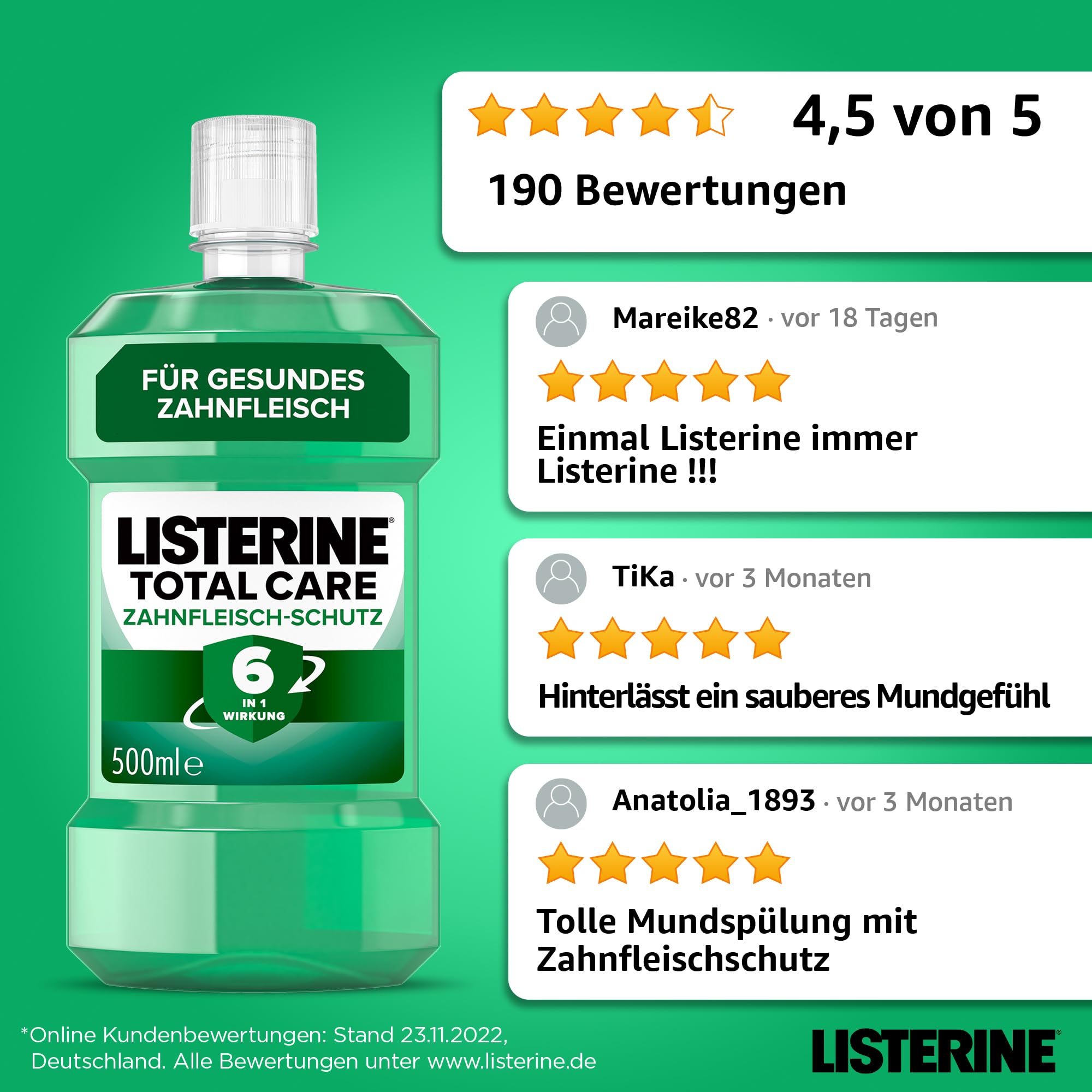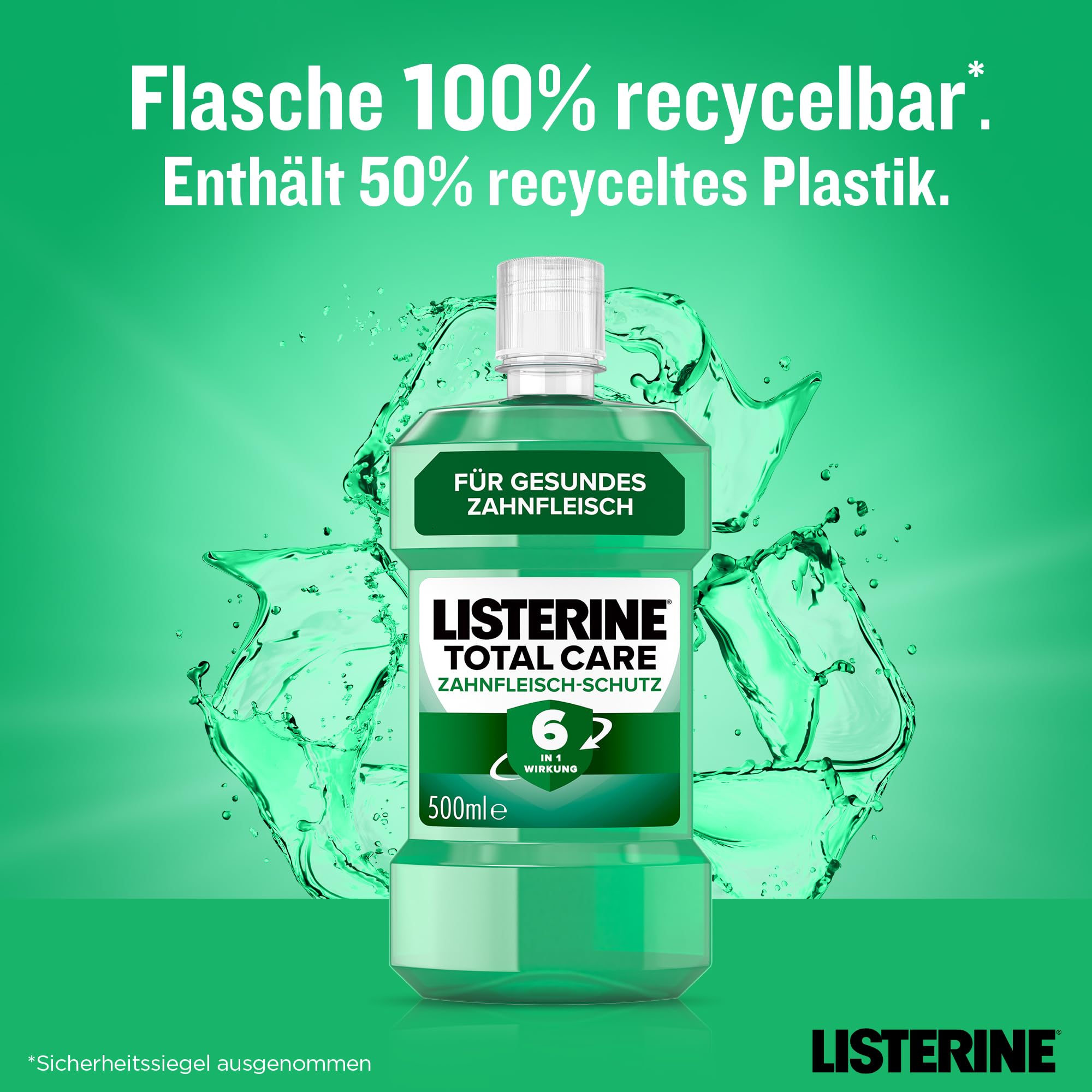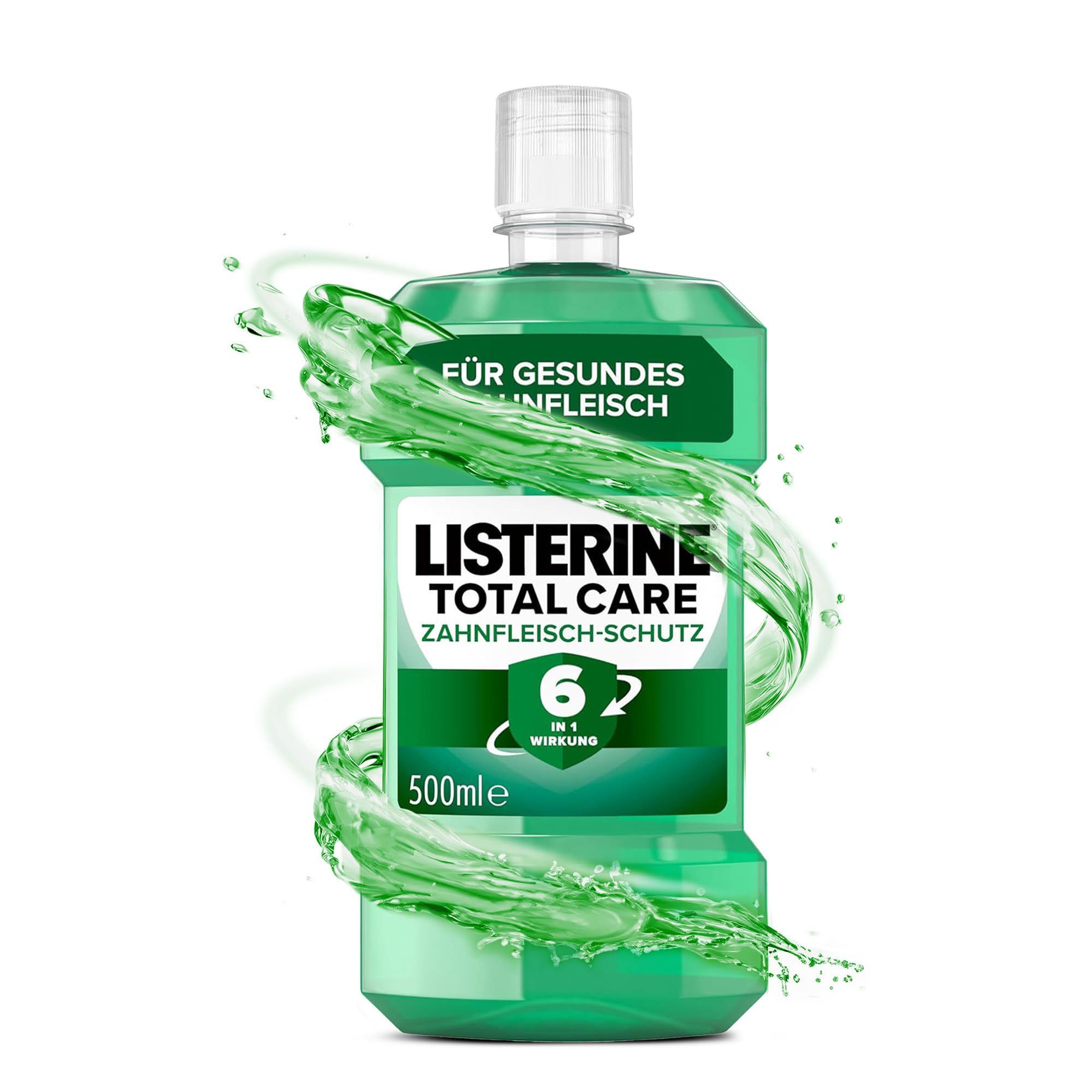 LISTERINE Total Care Zahnfleisch-Schutz 500 ml, schützende Mundspülung gegen Zahnfleischprobleme mit 6 in 1 Wirkung, antibakterielles Mundwasser stärkt die Zähne, bis zu 24h frischer Atem