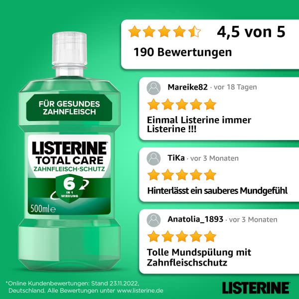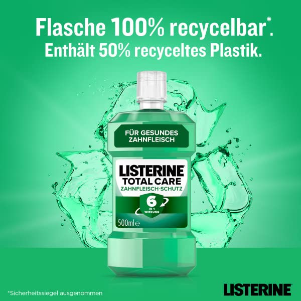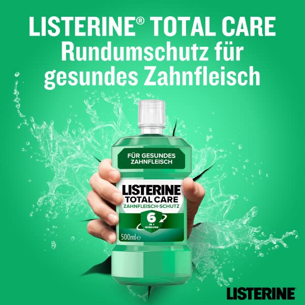 LISTERINE Total Care Zahnfleisch-Schutz (500 ml), schützende Mundspülung gegen Zahnfleischprobleme mit 6 in 1 Wirkung, antibakterielles Mundwasser stärkt die Zähne, bis zu 24h frischer Atem