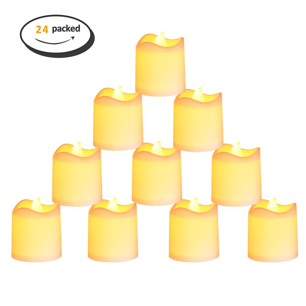 Litake LED Kerzen,Teelichter 24 Realistische Flackernde Flammenlose Dekorations-Kerzen Warme Weisse Elektrische Tee Lampen für Hochzeiten Geburtstag Feste Halloween Haus Abendessen Party Dekoration