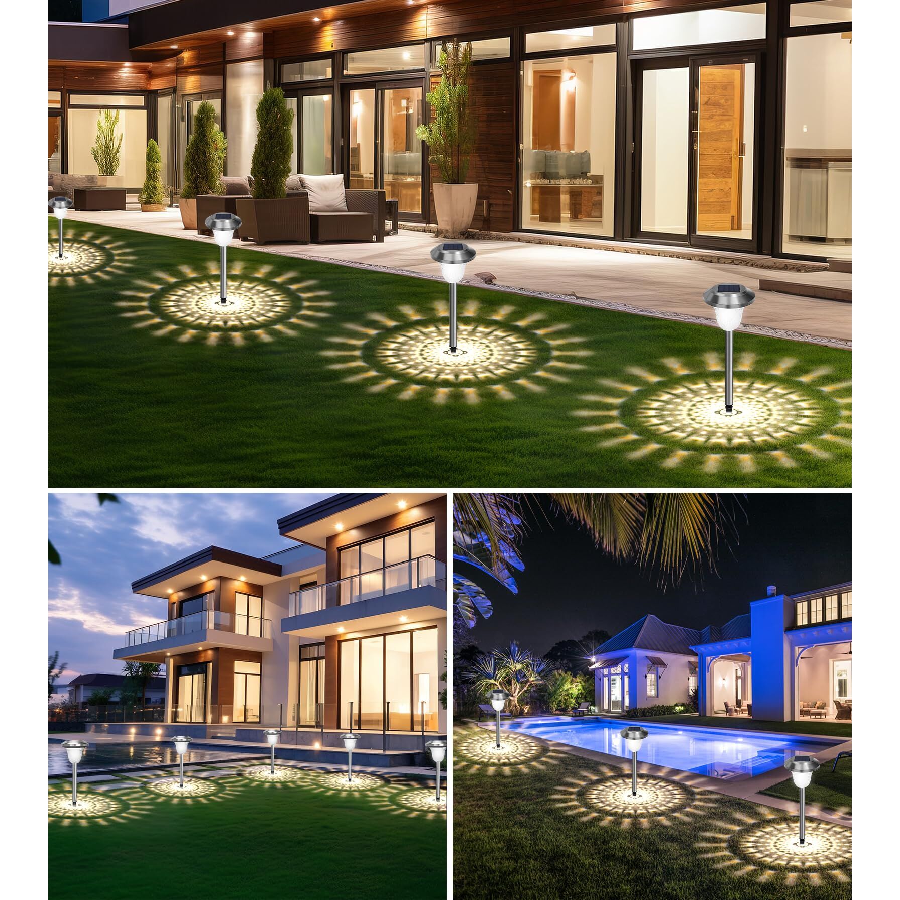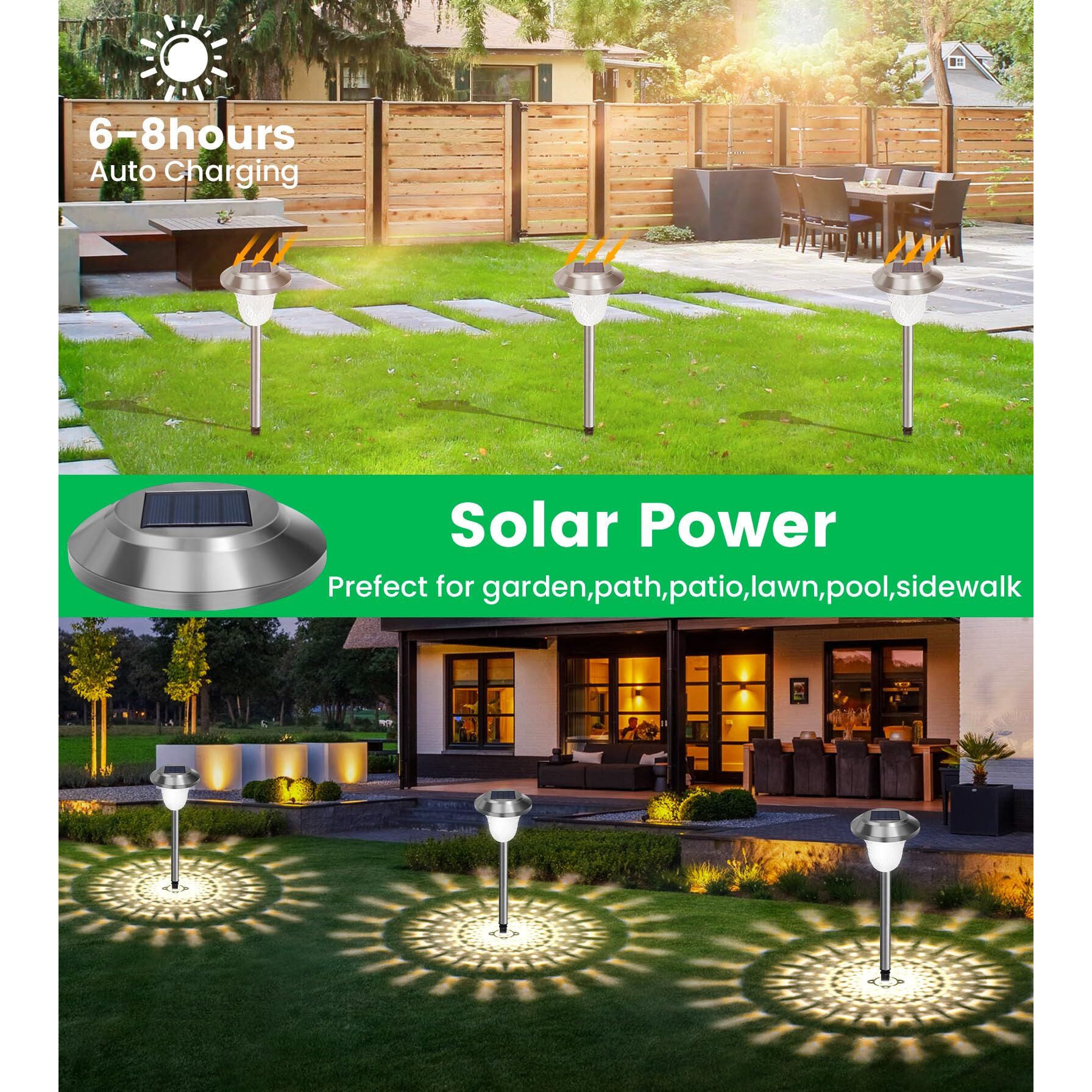LITOHOM Solarlampen für Aussen Garten, 4 Stuck Solarleuchten Garten mit Warmweiss IP65 Wasserdicht Edelstahl Metall Solar Wegeleuchte Solarleuchten Garten Deko für Rasen, Terrasse, Hof