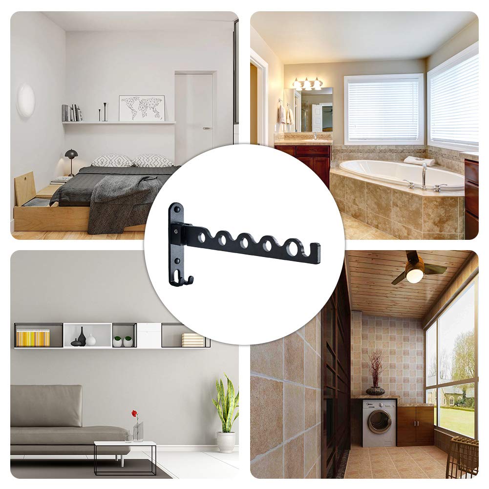LIVEHITOP Wand Kleiderständer Klappbar, Kleiderbügel Haken Garderobenhaken Aluminium für Waschküche Badezimmer Badezimmer Balkon (Schwarz, 1)