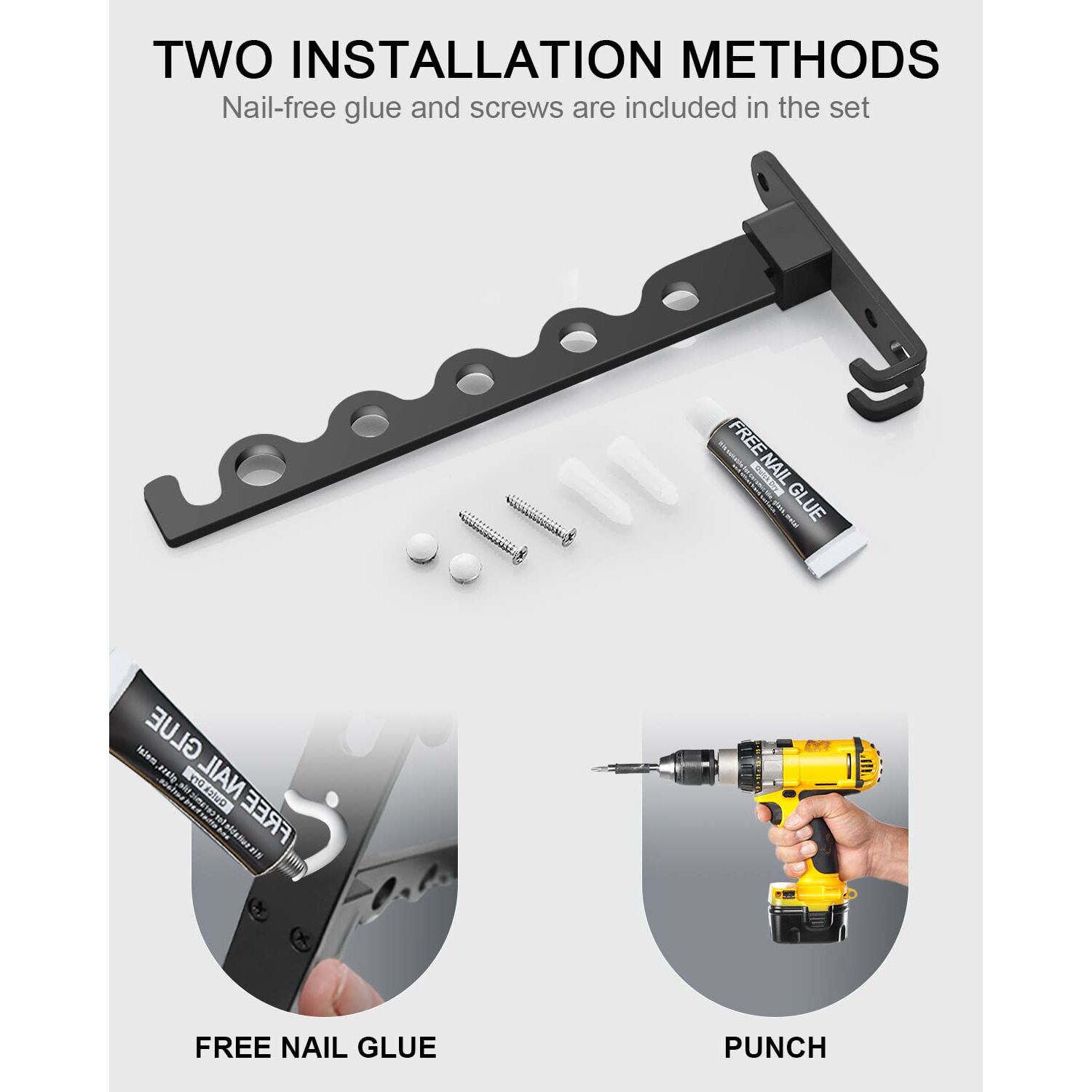 - 【2 Installationsmethoden】 - Die an der Wand montierte Kleiderstange bietet zwei Möglichkeiten zur Installation: Schraubmontage und freies Bohren mit Klebstoff und Befestigungsschrauben. Der faltbare Wandhalter kann an jeder Wand montiert werden. Kleber für glatte Wand (glatte Fliesen / Marmor / Glas / Metall / Massivholzwand / mattiert). Bohren Sie für unregelmässige Wände (Stuckwand / Tapete / Zementwand).