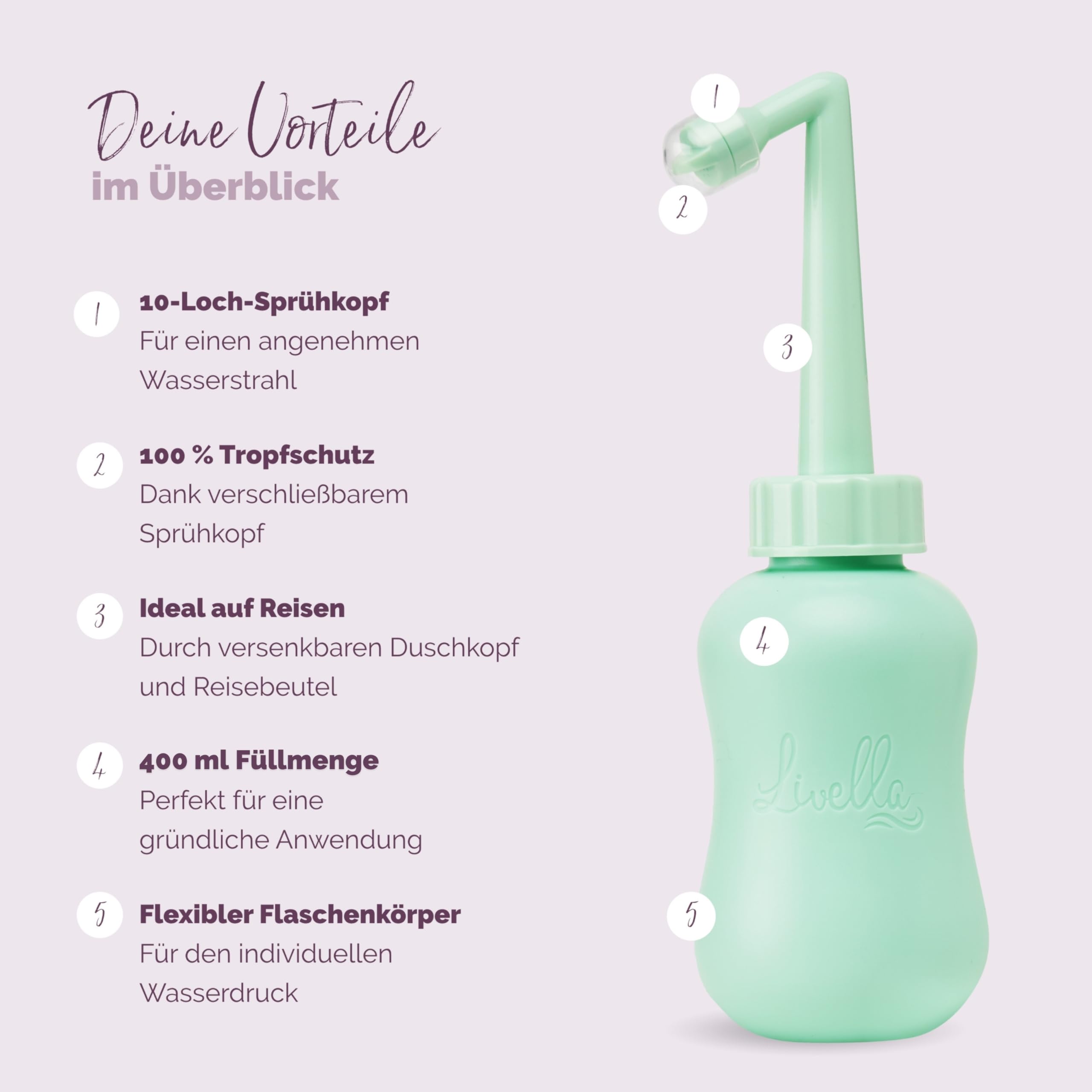 Livella Intimdusche Mint 400 ml, Portable Bidet Podusche fuer Wochenbett und Reisen
