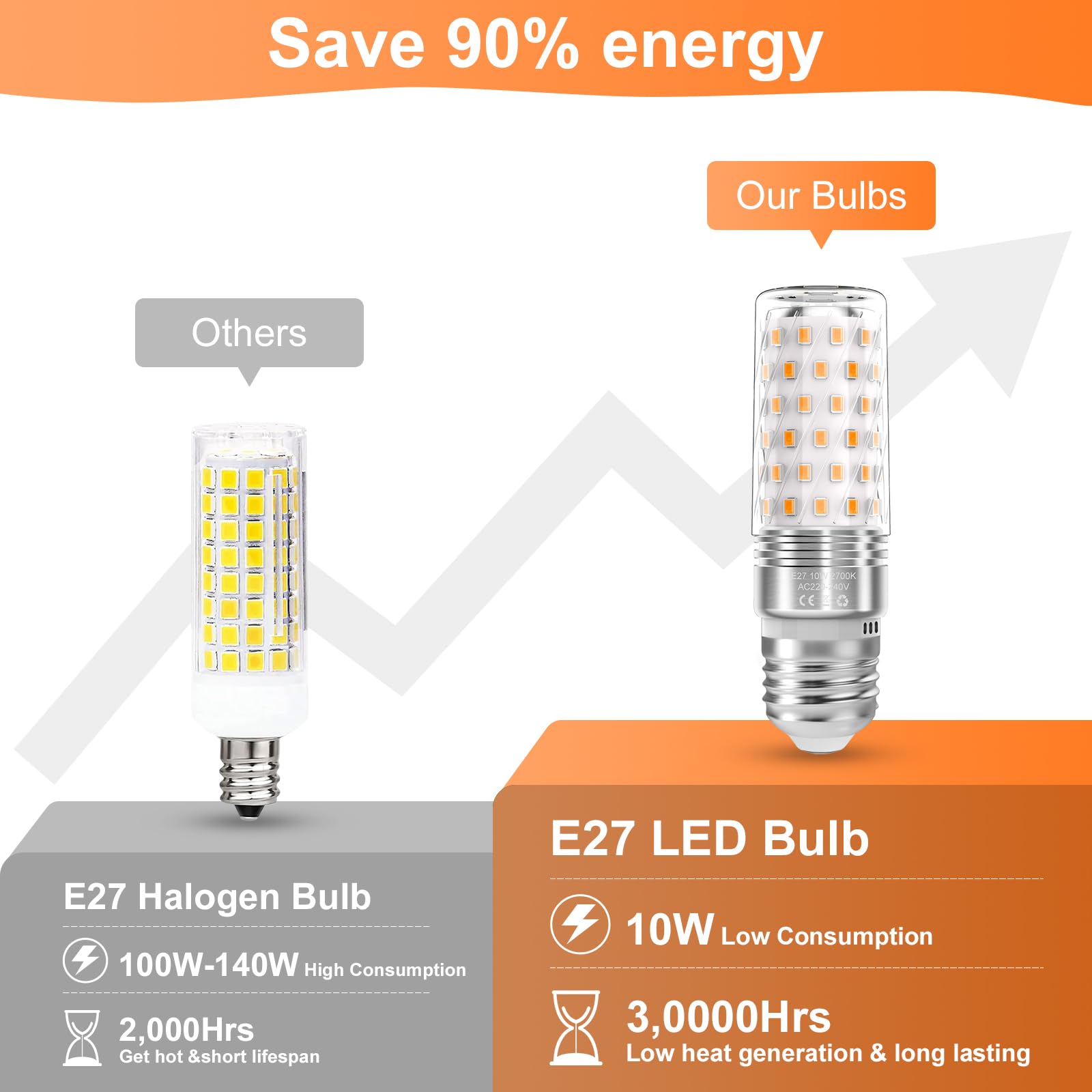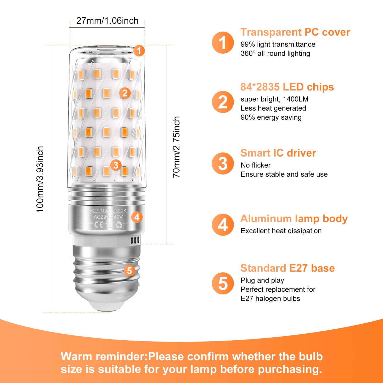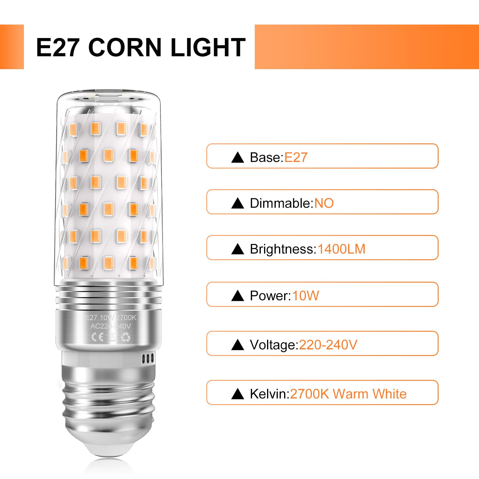 Liyade LED Birne E27, 10W LED Glühbirne, Warmweiss 2700K 1400LM Glühbirne ersetzt 140W Halogenlampe, E27 Lampe Maiskolben Leuchtmittel, Kein Flackern, Nicht Dimmbar, AC 220-240V, 2er Pack