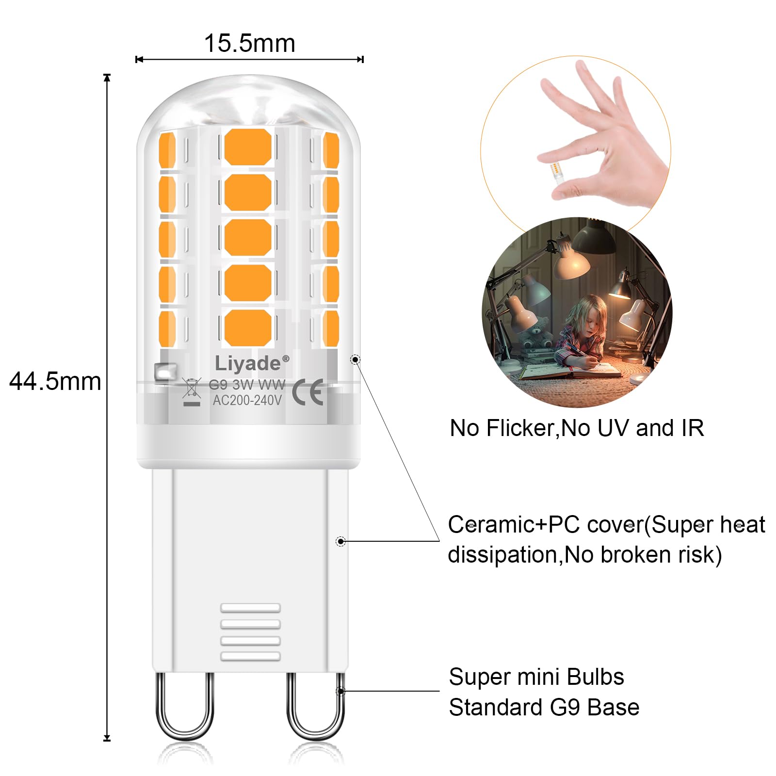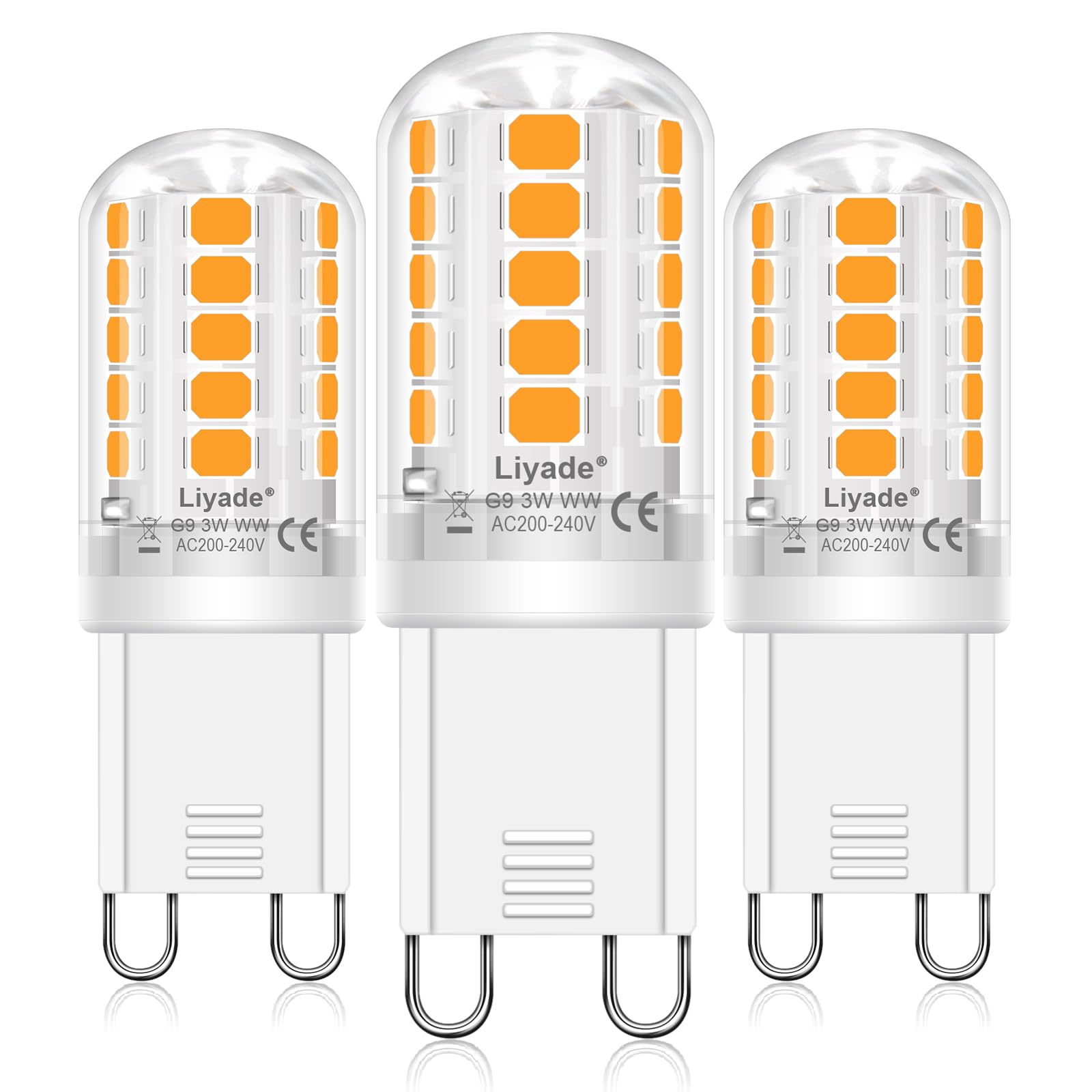 Liyade G9 LED Lampe warmweiss, 3W 2700K, LED Leuchtmittel 3W entspricht 30W-40W Halogenlampe, Glühbirne 360LM Lampen AC 220V kein Flackern, nicht dimmbar, Enegiesparende G9 kleine Birne(3 Pack)