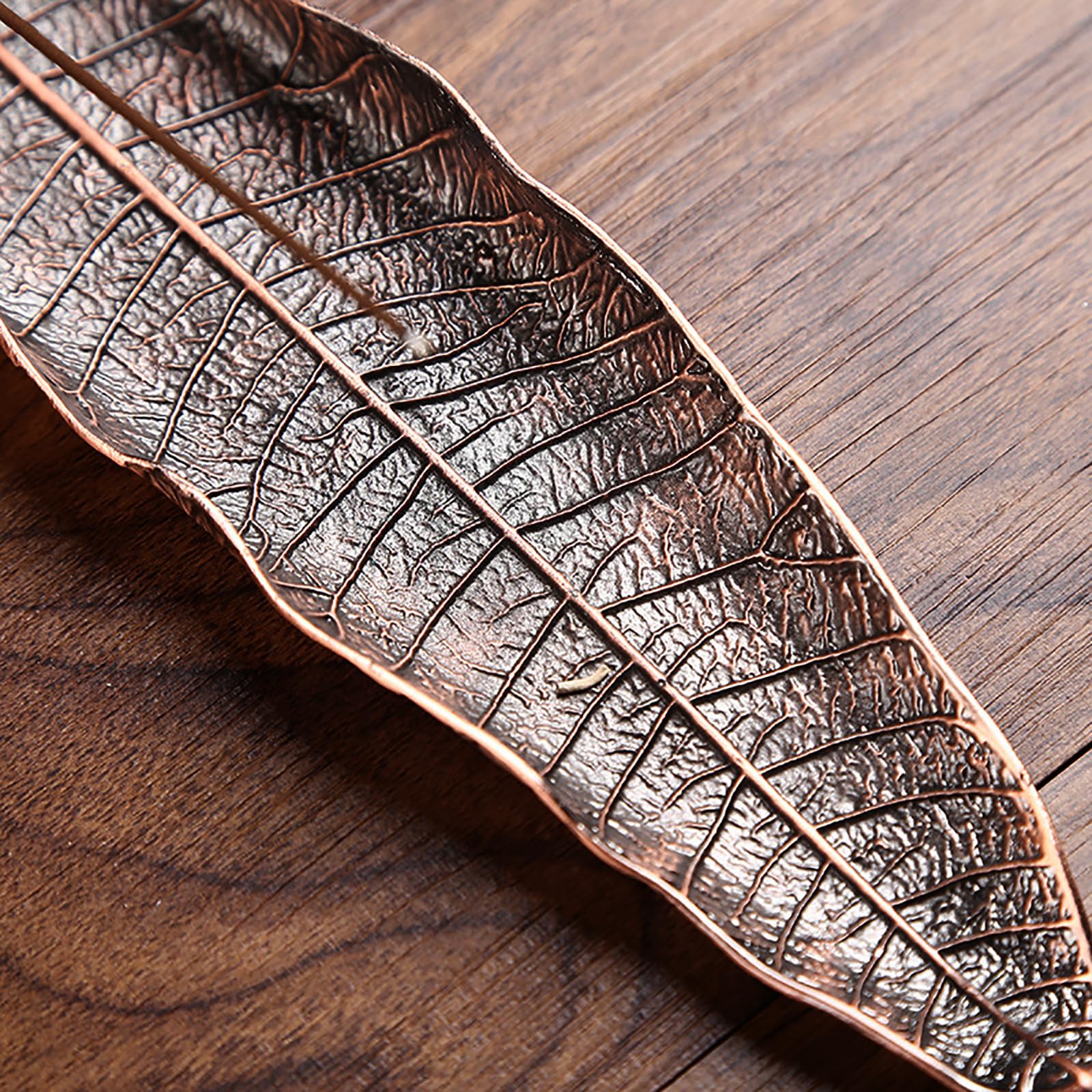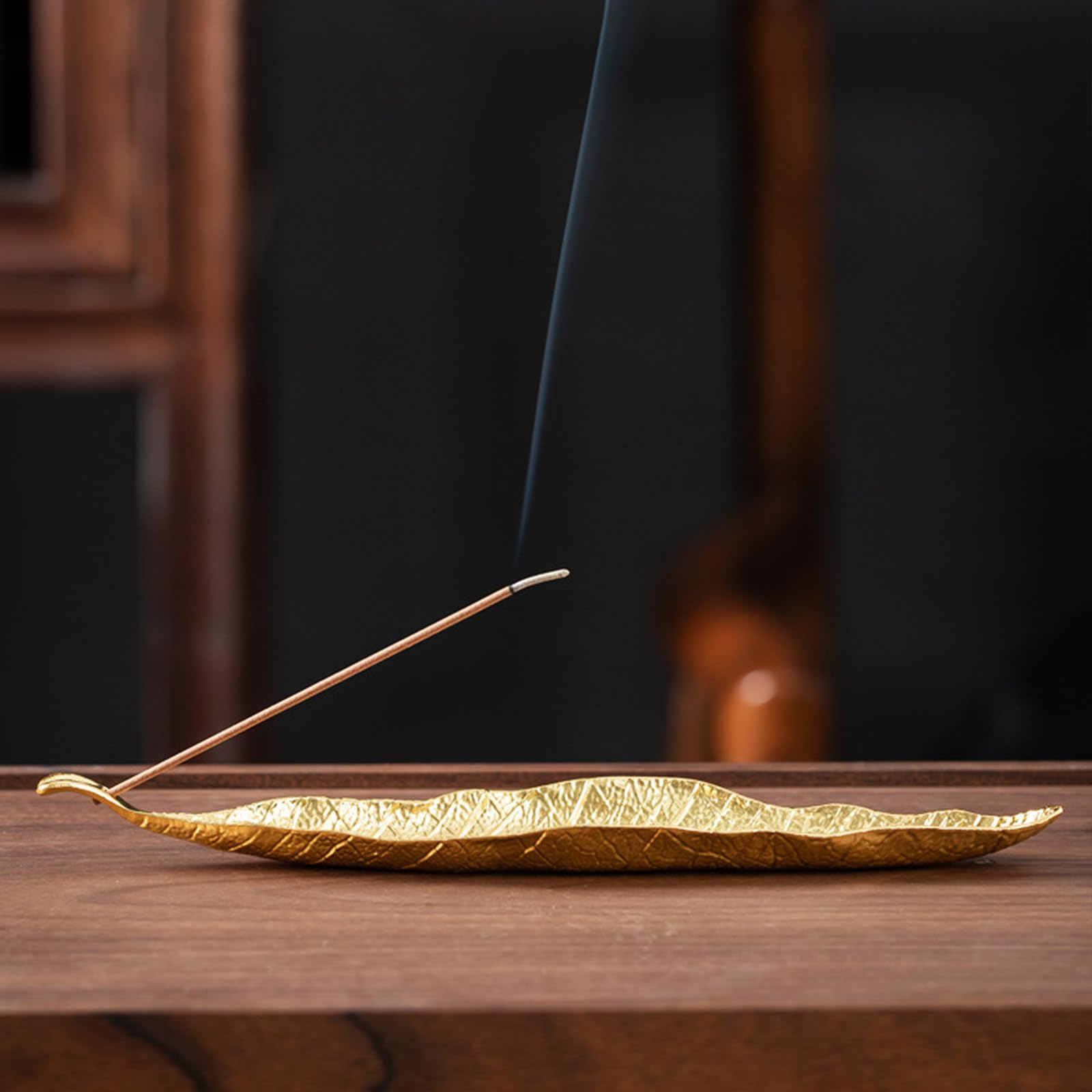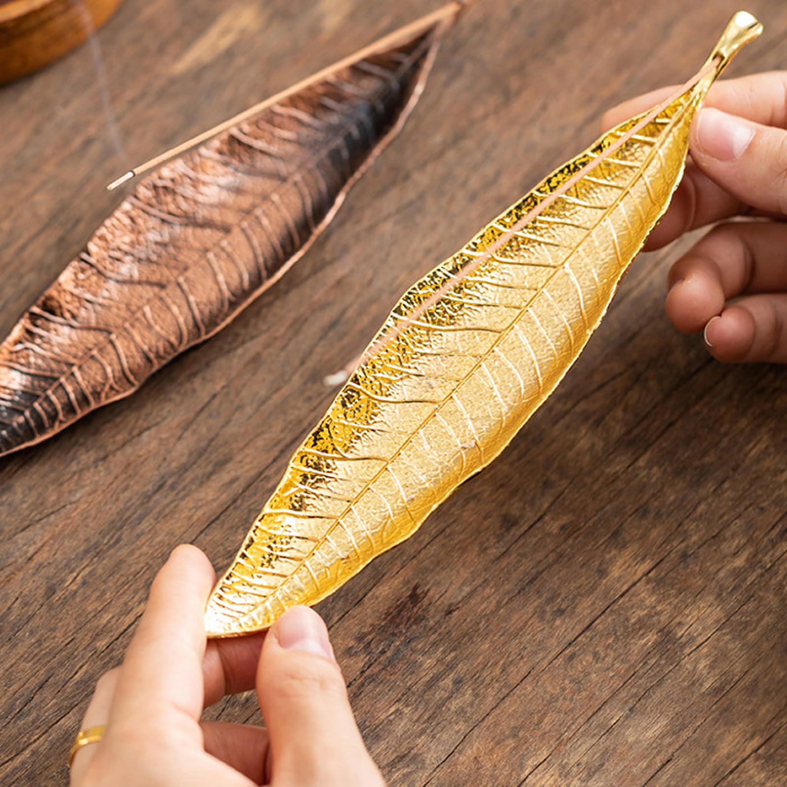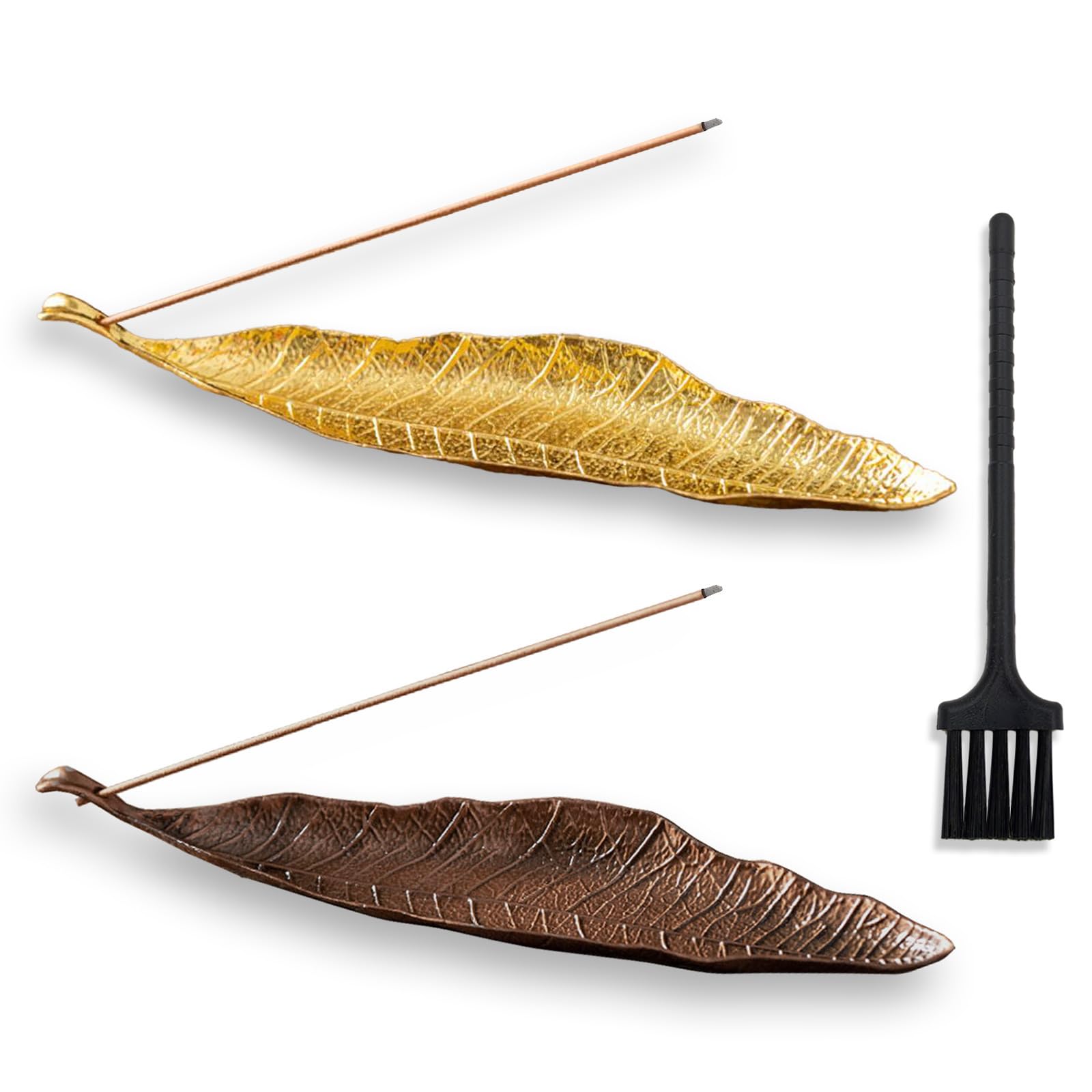 LLMtn 3-teiliges Set, bestehend aus 2 blattförmigen Räuchergefässen aus Metall und 1 Aschebürste (Kupfer x1 Gold x1)