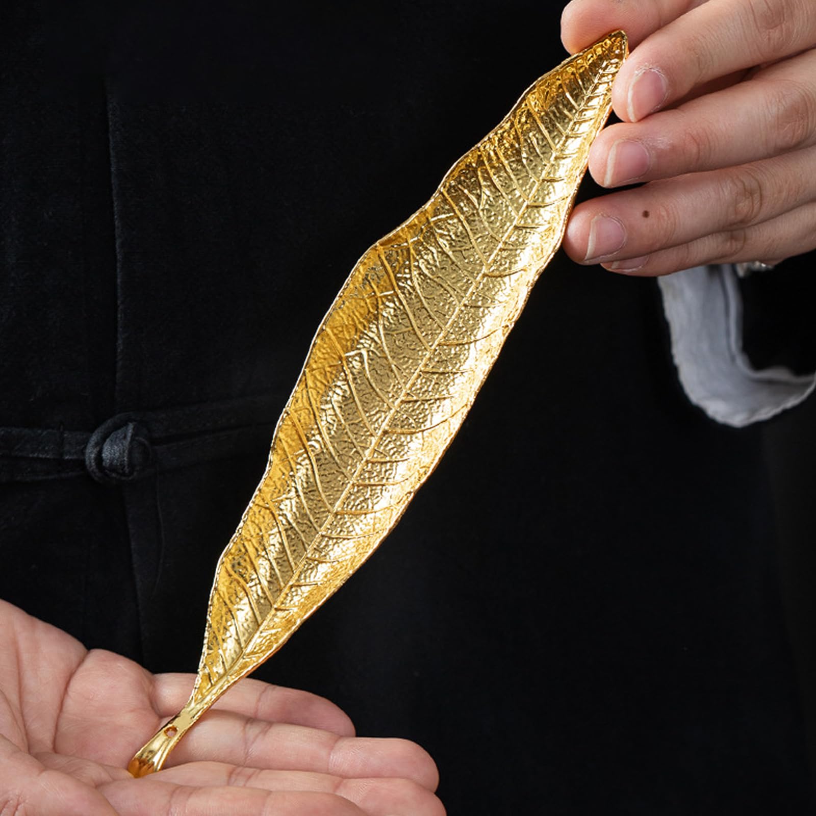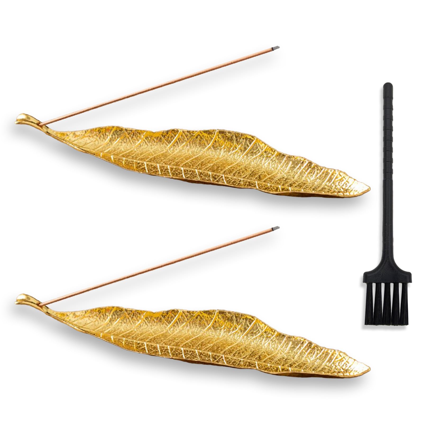 LLMtn 3-teiliges Set, bestehend aus 2 blattförmigen Räuchergefässen aus Metall und 1 Aschebürste (Gold)