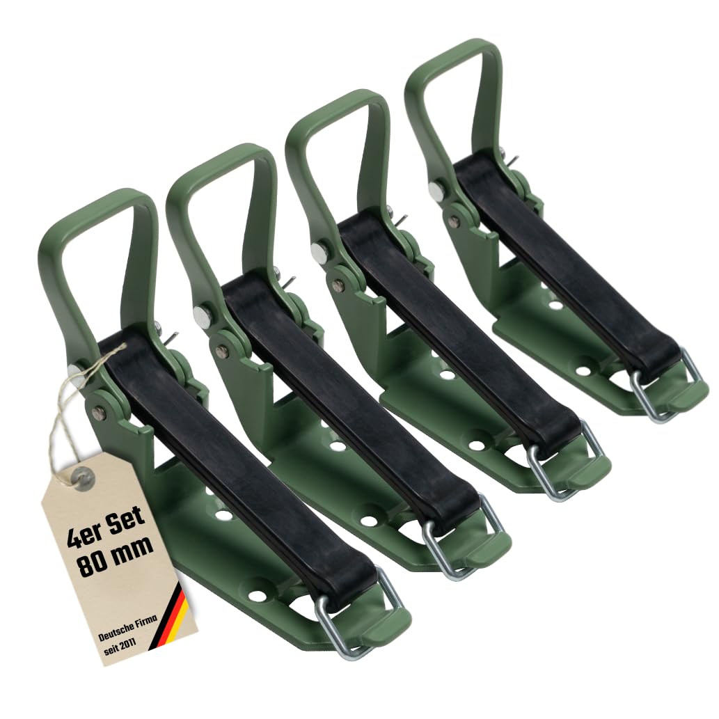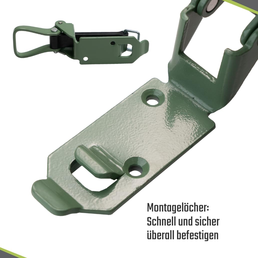 LOADCARE Verschlusslager Schaufelhalter Spatenhalter Axthalter Besenhalter Spannverschluss Geräterhalterung Garten (4 Stück 80 mm olivgrün)