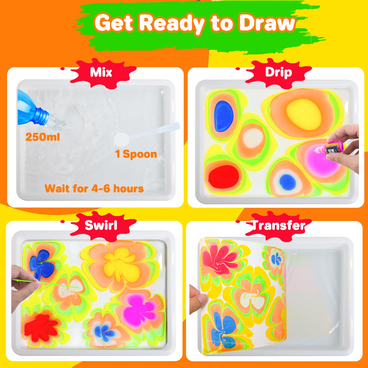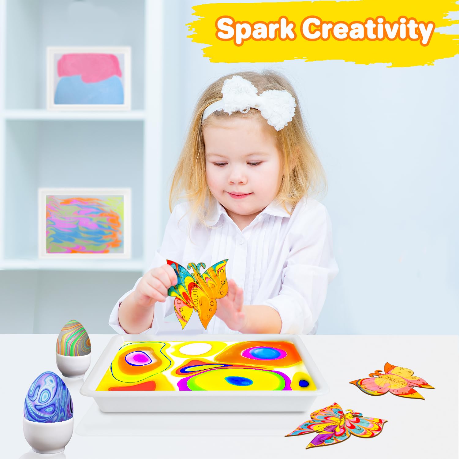 Lobyoh Basteln Kinder 6 7 8 9 10 Jahre, Marmorierfarbe 12 Farben, Bastelset für Mädchen ab 6 Jahre, Kreativ Set Mädchen ab 11 12 Jahre