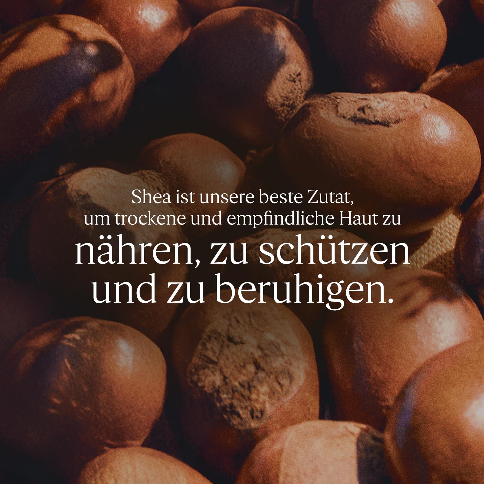 • Sheabutter Koerpercreme Diese reichhaltige Koerpercreme naehrt und beruhigt die Haut sofort und staerkt ihre Schutzbarriere. Die gehaltvolle Textur laesst sich leicht auftragen und zieht schnell ein, ohne einen fettigen Film zu hinterlassen.