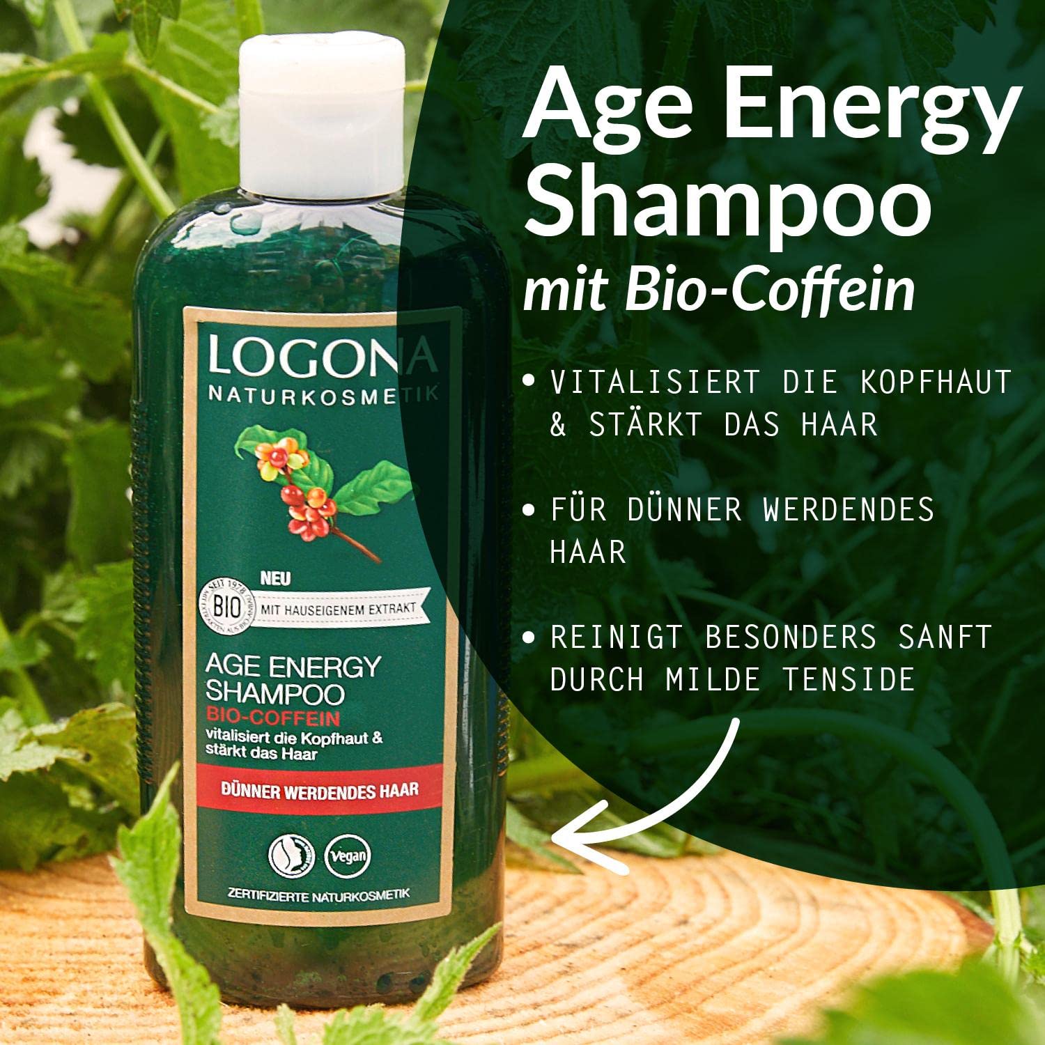 • Lieferumfang: 1x LOGONA Naturkosmetik Age Energy Shampoo mit Bio-Coffein, Inhalt: 250 ml