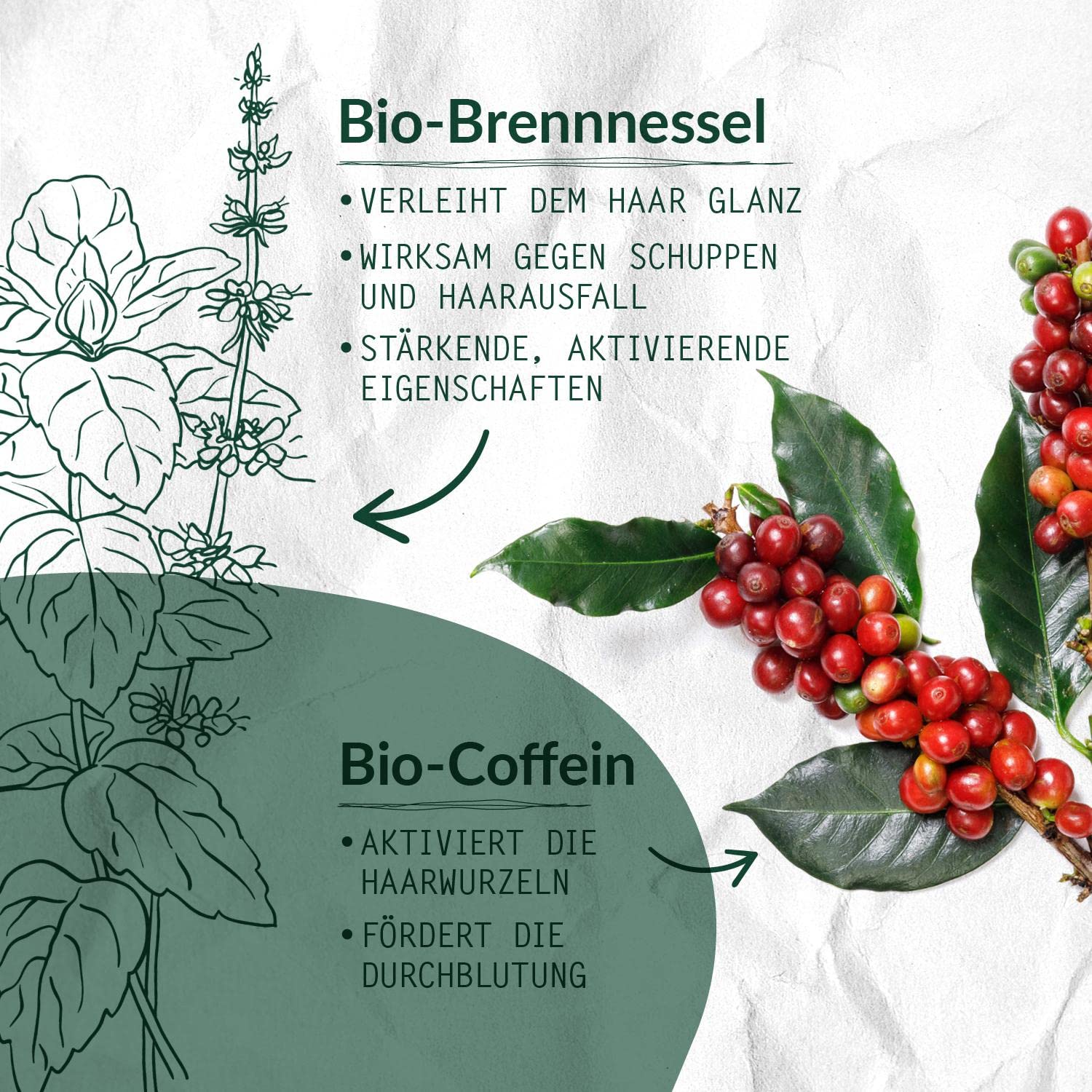 • Ergebnis: Vitalisierte Kopfhaut und Haarwurzeln sowie gestärktes Haar dank stimulierendem Bio-Coffein, Gesunder Glanz durch Bio-Brennnessel
