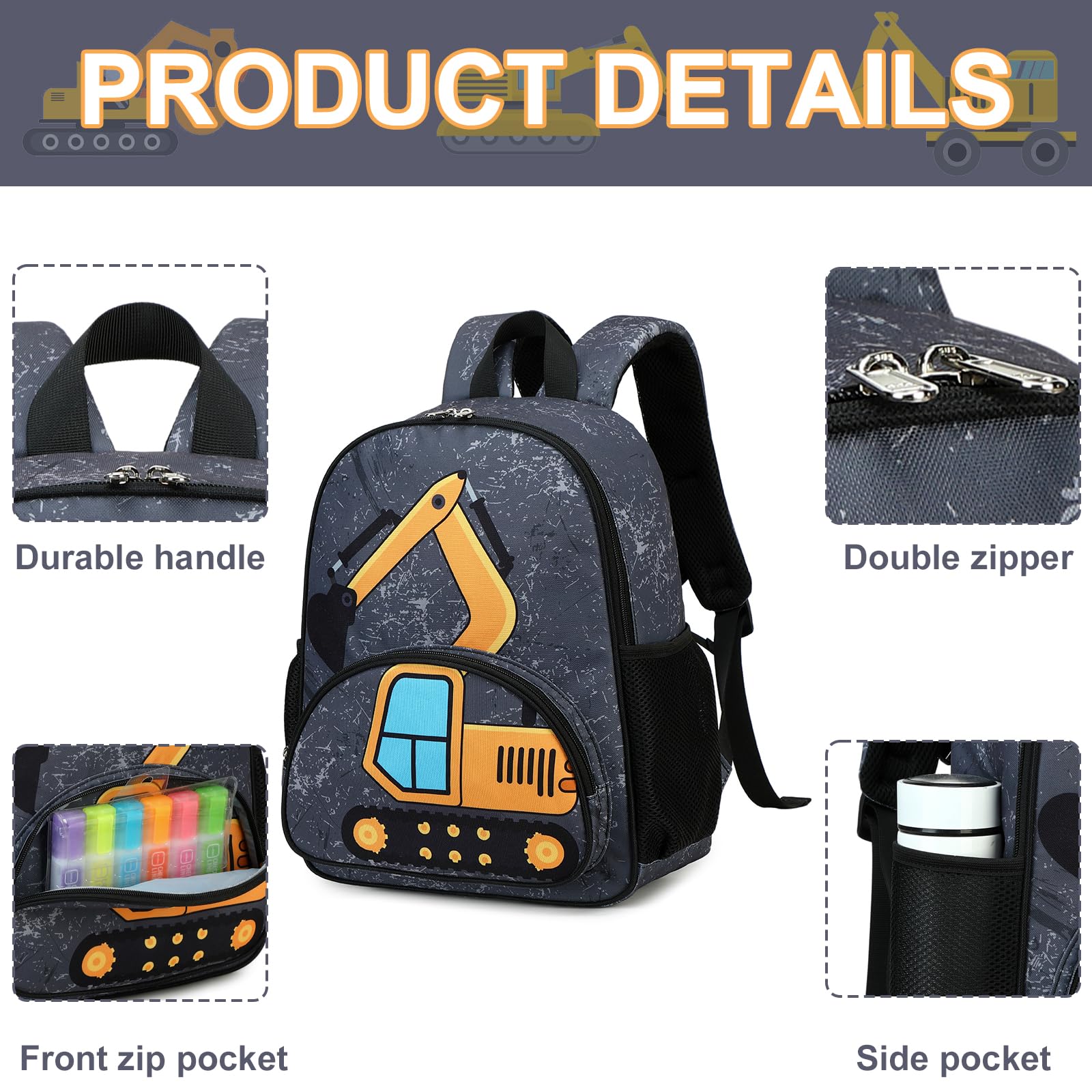 - Einzigartiges Design: Der Kindergartenrucksack hat ein einzigartiges und niedliches Druckmuster, Kinder werden diesen niedlichen Dinosaurier, Hai, Auto, Ingenieursfahrzeug und Fussball lieben, diese Tasche ist auch perfekt, um die Fantasie der Kinder anzuregen.