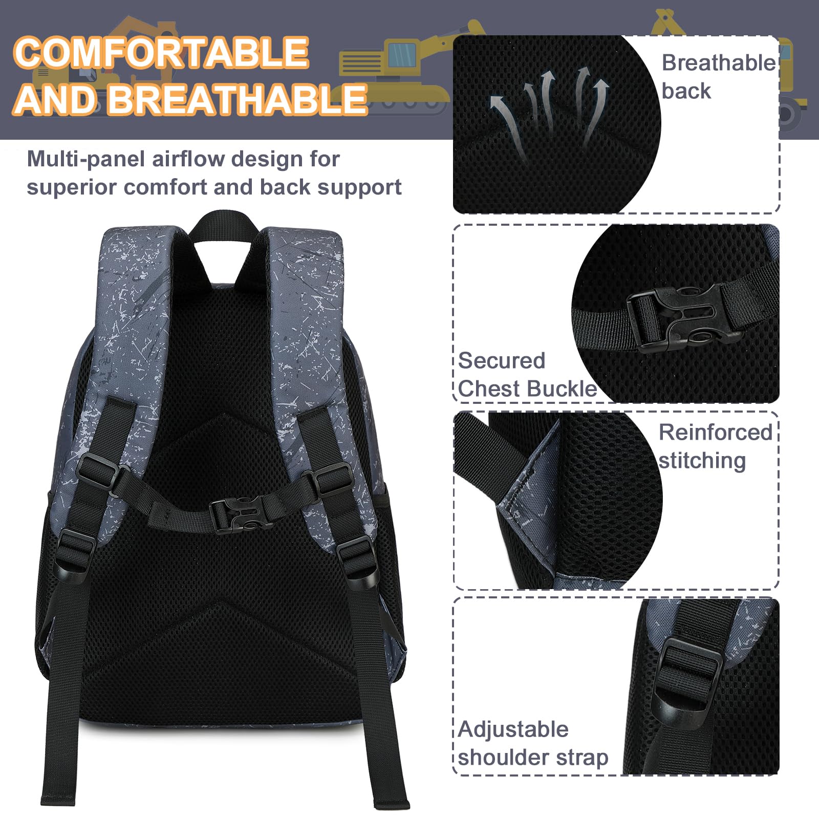 - Verstellbarer Riemen und Brustclip:Die Riemen und der Brustclip der Schultasche sind verstellbar. Die Schultergurte des Kinderschulrucksacks bestehen aus atmungsaktivem Netz mit weichen Polstern,das Rückenpolster ebenfalls,Sie können den Druck auf die Schultern der Kinder verringern.