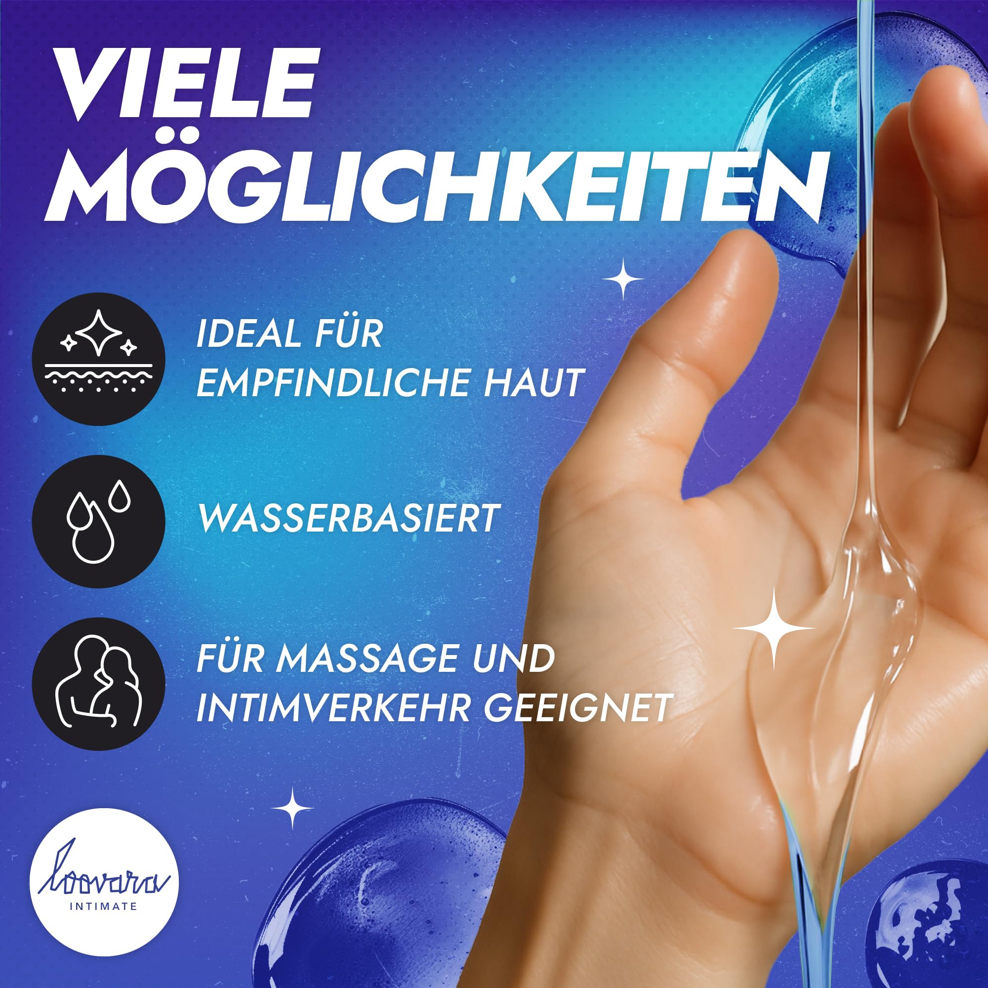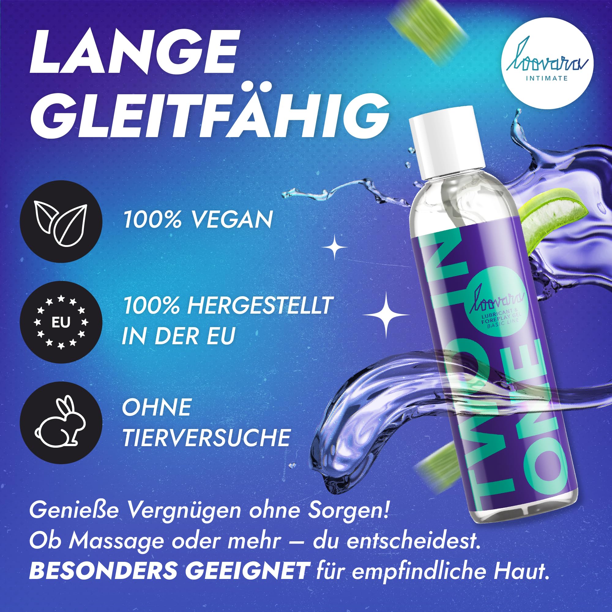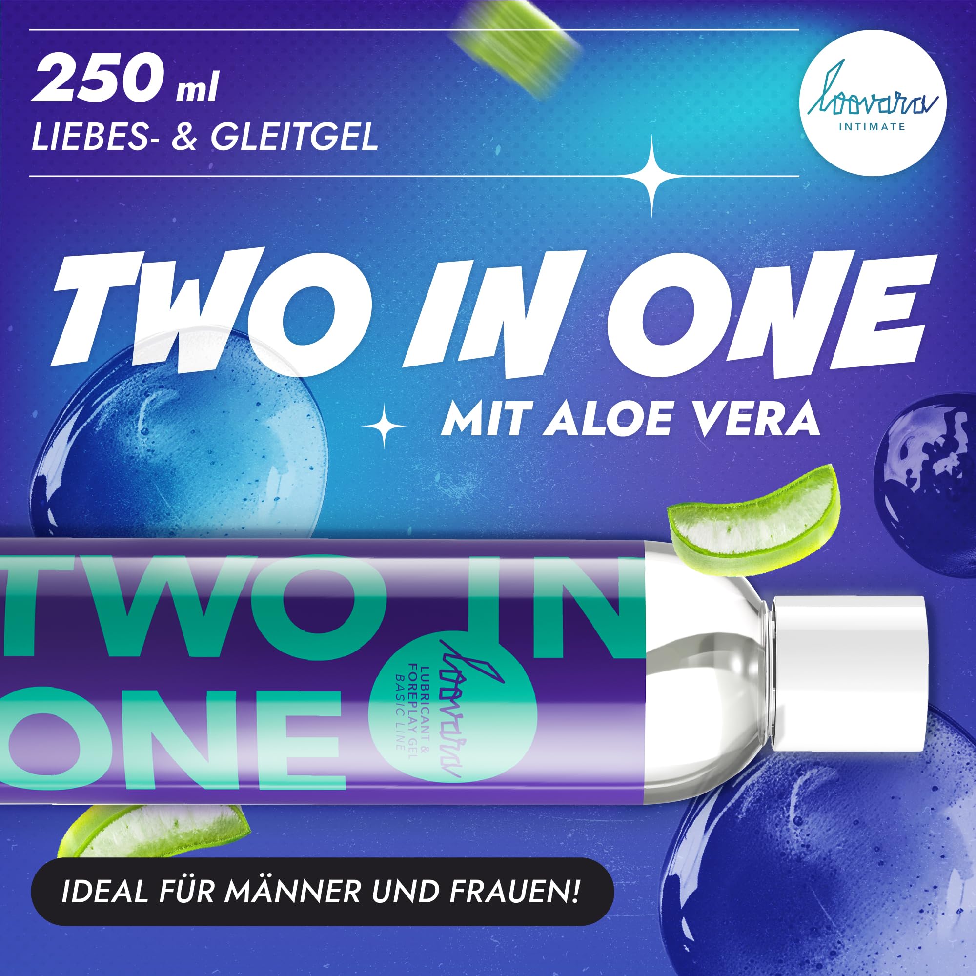 LOOVARA Gleitgel Massageöl 250 ml - TWO IN ONE – 2 in 1 pflegendes Massage-Öl & Gleitgel mit Aloe Vera, Vegan, natürlich, dermatologisch getestet, kondomsicher, Ideal für Toys, Made in EU