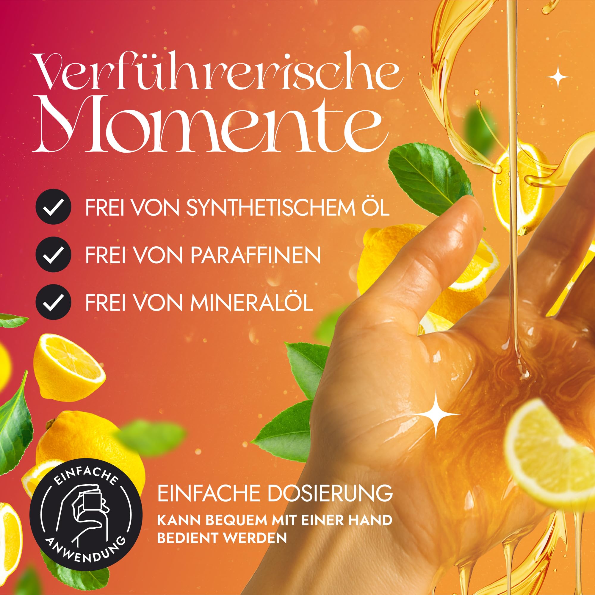 LOOVARA Massageöl LEMON LUSH 150 ml mit Zitrus Duft für genussvolle Massagen - Premium Erotik Massage Öl