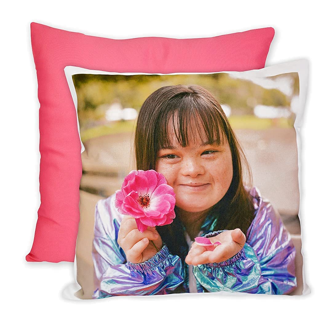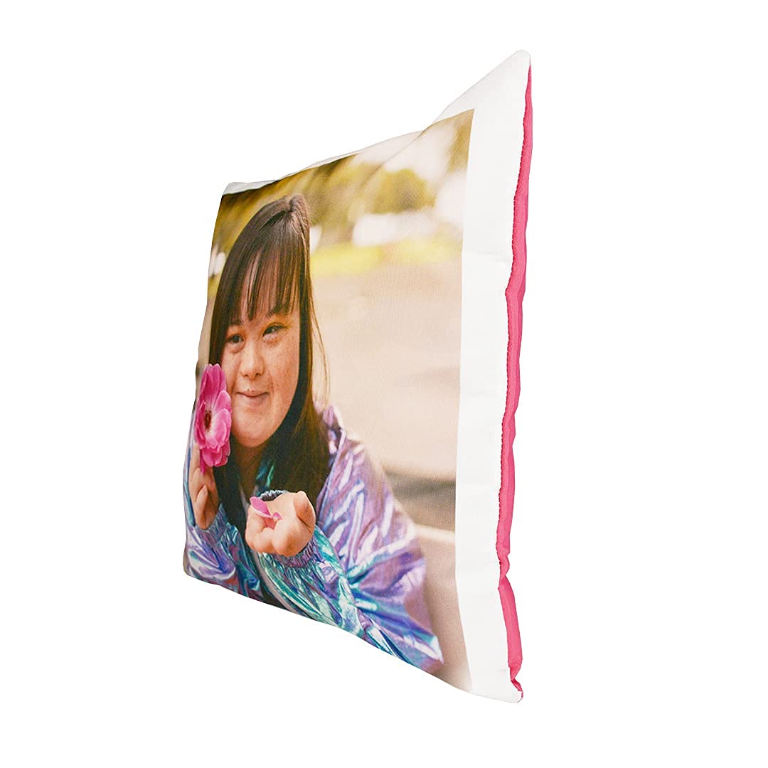 LOOXIS Personalisiertes Kissen mit Foto & Text Bedruckt, selbst gestalten – 40x40 cm, farbige Rückseite, Leinenhaptik – Geschenkidee Männer, Frauen, Jahrestag, Geburtstag, Einzug – Bonbonpink