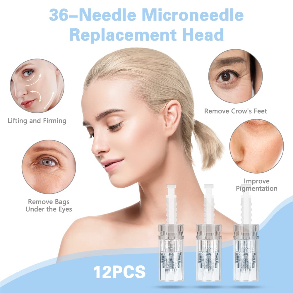 LOPHE 36 Pin Ersatz Nadeln Patrone,12 Stück Universalmodell Ersatznadeln Mikronadel Derma Pen, Microneedling Pen Nadelpatronen für Auto Micro Nadelroller Einstellbar Needling Pen (Bajonett)