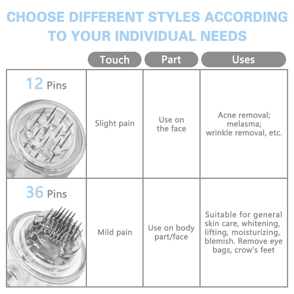 MICRONEEDLE PAKETINHALT: 12 Ersatzkartuschen mit 12 / 36 Pins, kompatibel mit Derma Pens mit Schraub- oder Bajonettverschluss.