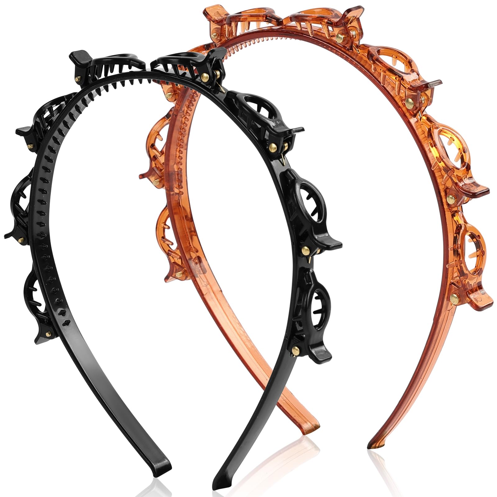 LOPHE Haarband mit Clips, 2 Stück Double Bangs Hairstyle Clip für Damen, Mädchen, Haarreifen mit Klammern Twist Clip Stirnband Frisurenhilfe