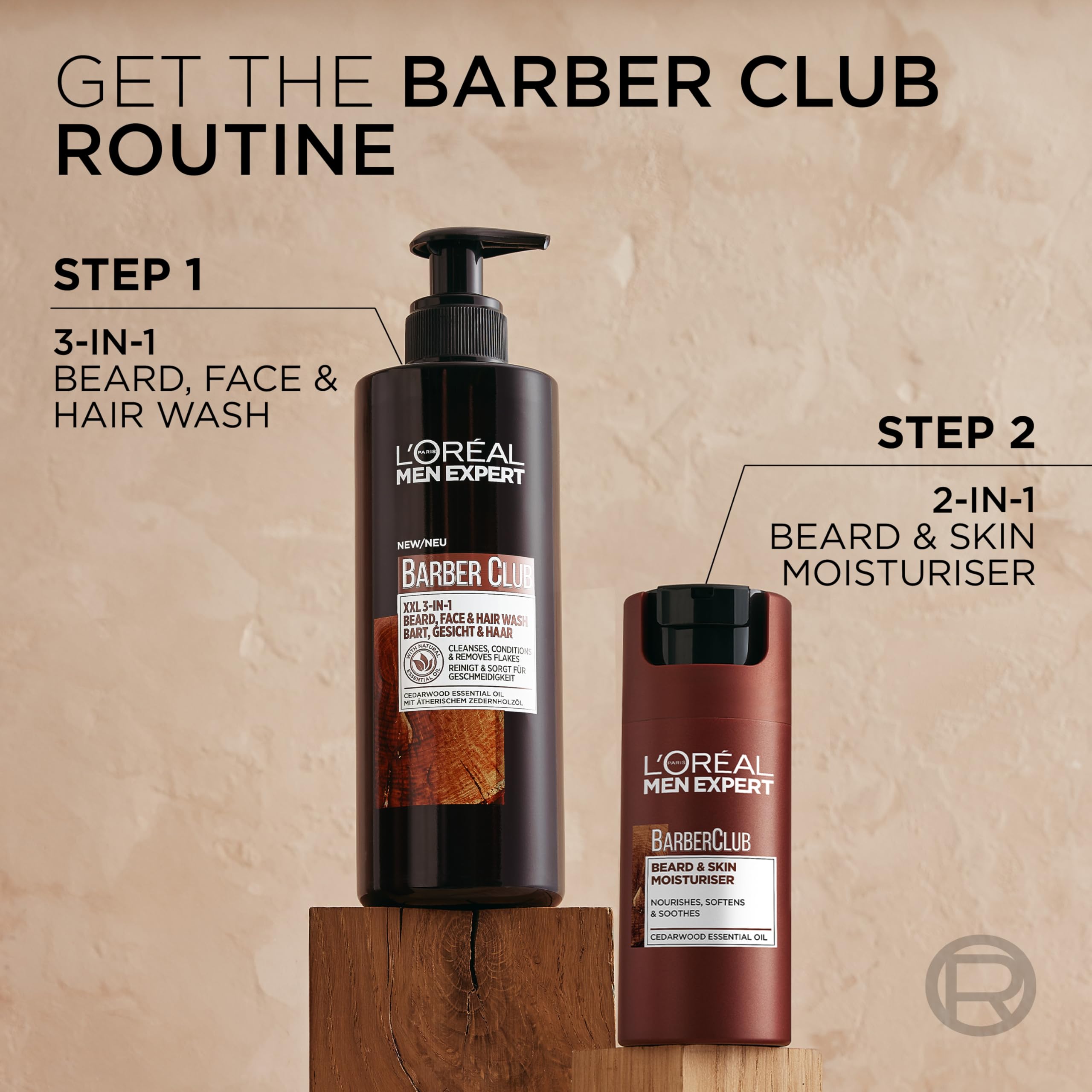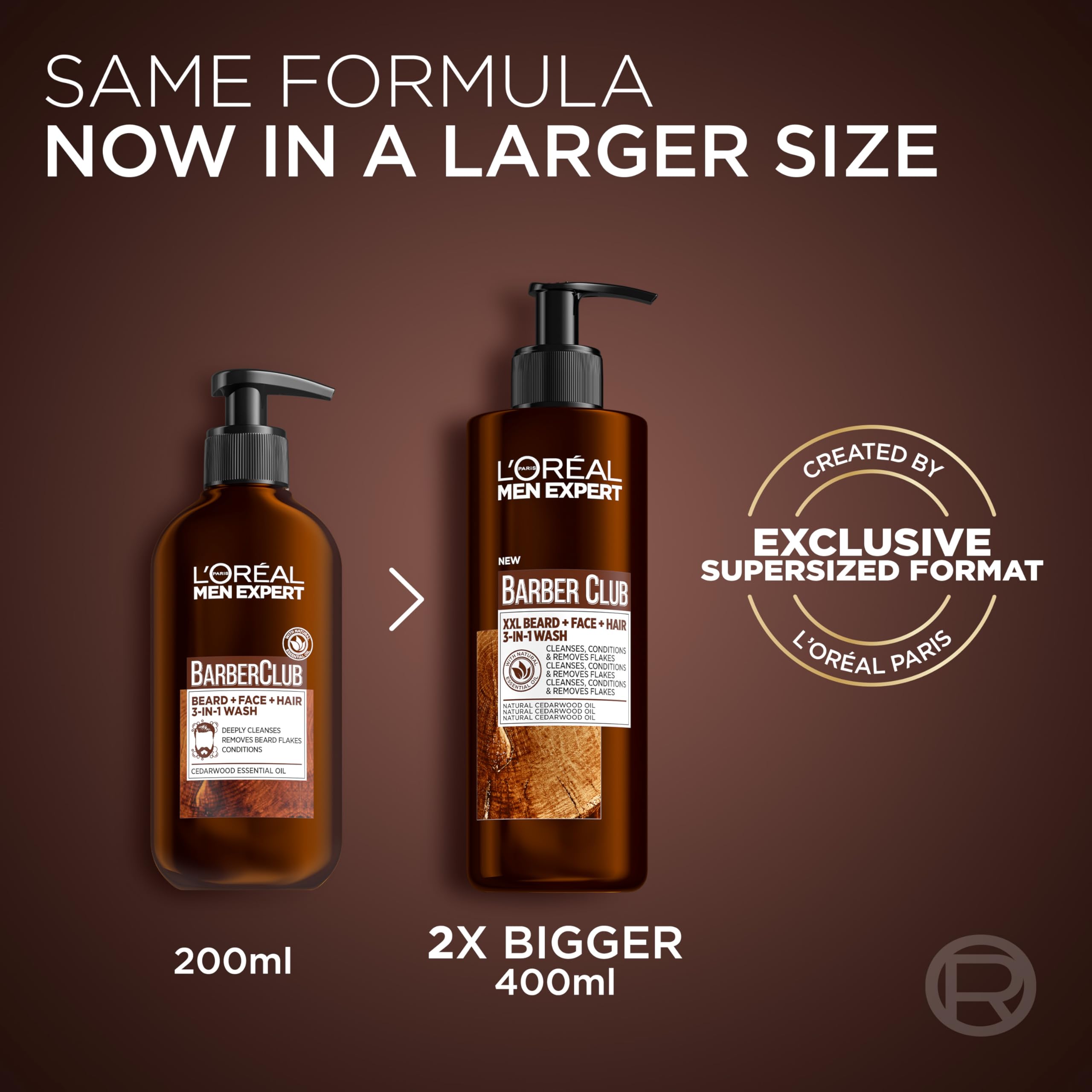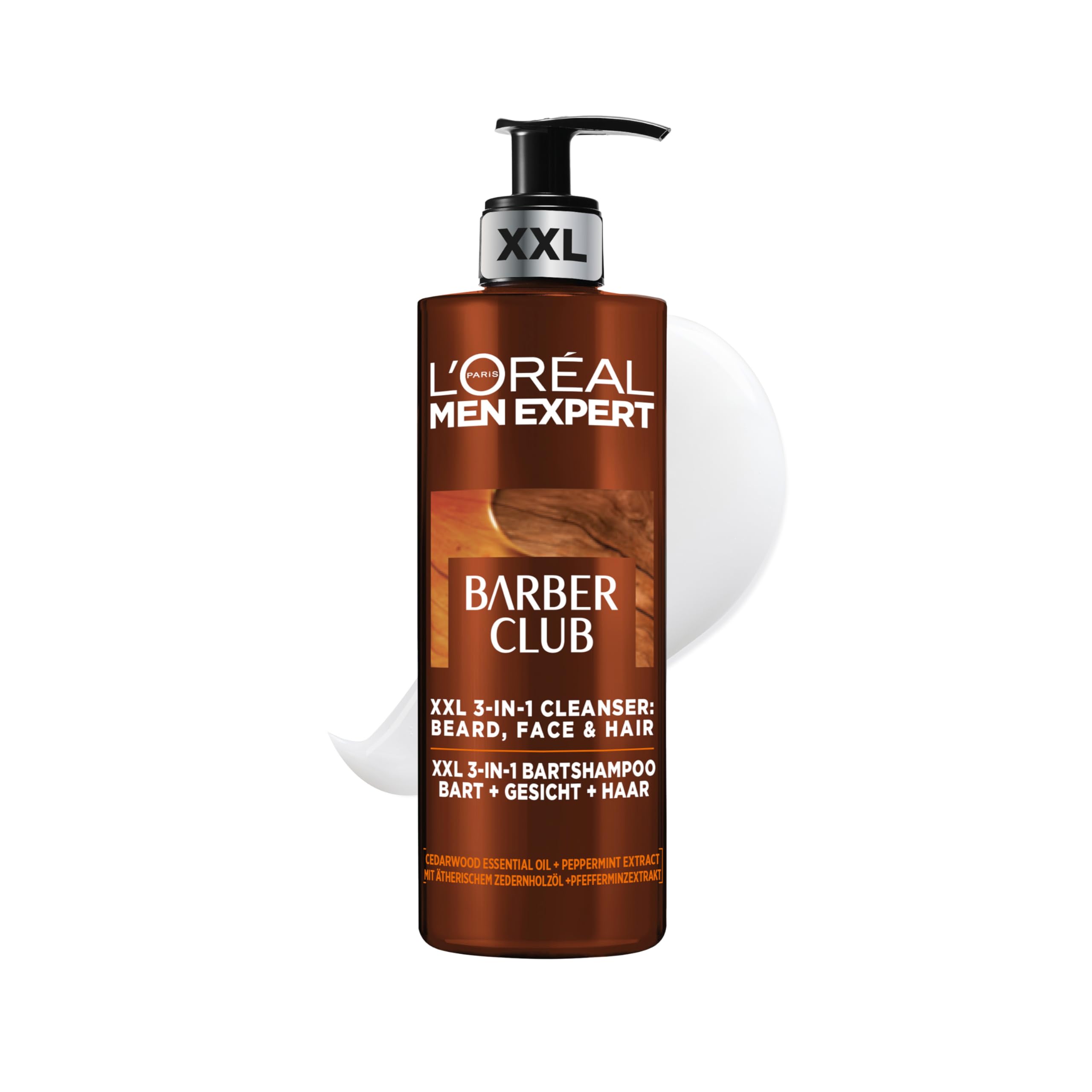 L'Oréal Men Expert XXL 3-in-1 Bartshampoo für Männer, Für Bart, Gesicht und Haar, Beruhigende Bartpflege für Männer gegen Schuppen mit Zedernholzöl, Barber Club, 1 x 400 ml
