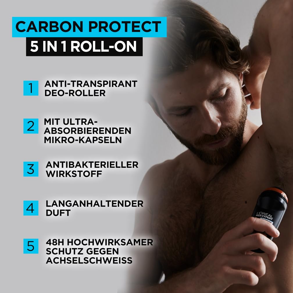 Das L'Oreal Paris Men Expert Carbon Protect Deo 5-in-1 ist ein Anti-Transpirant Spray fuer Maenner und liefert starken Schutz bei schnell schwitzender Maennerhaut. Die 5-in-1 Wirkung richtet sich gegen Geruch, Naesse und Bakterien und hilft zusaetzlich, weissen Rueckstaenden vorzubeugen. Die Hochleistungs-Formel bietet bis zu 48 Stunden Transpirations-Schutz und hinterlaesst ein frisches Hautgefuehl mit Intense Ice Duft. Geeignet fuer alle Hauttypen.