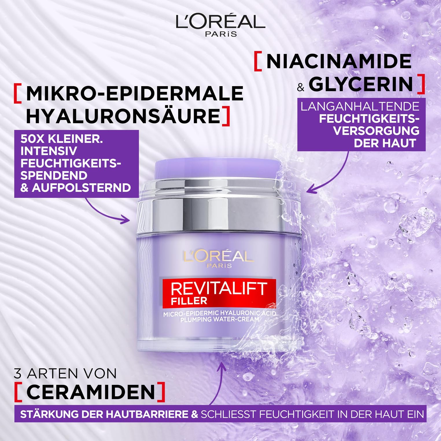 L'Oréal Paris Revitalift Filler Aufpolsternde Gel-Creme (50ml) – Mit Hyaluronsäure & Niacinamid