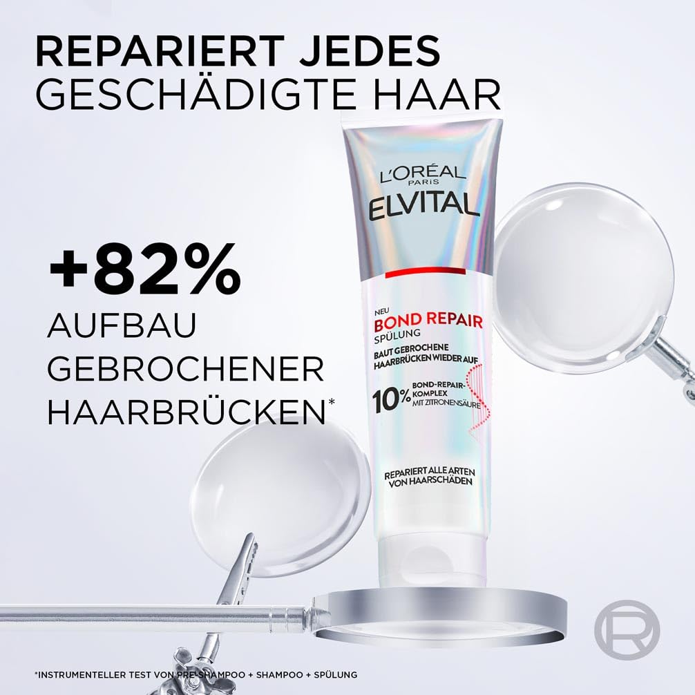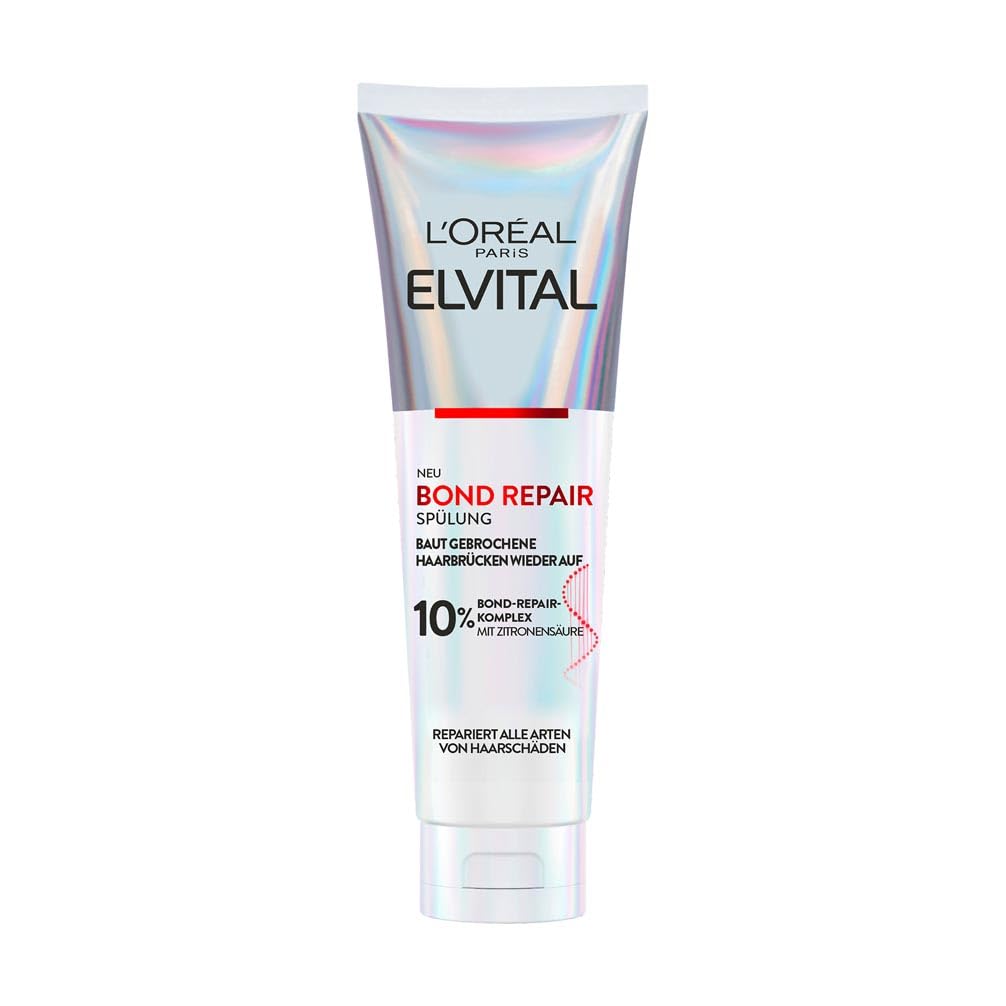 L'Oréal Paris Elvital Bond Repair Spülung, Conditioner gegen Haarschäden, Haarreparatur & Schutz, für weniger Haarbruch, mehr Geschmeidigkeit & Glanz, mit Bond-Repair-Komplex und Zitronensäure,150ml