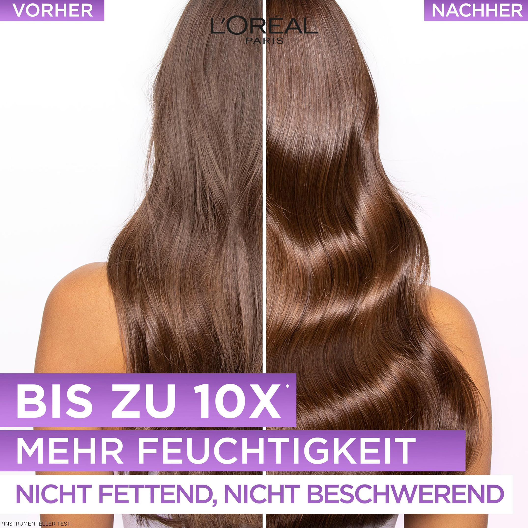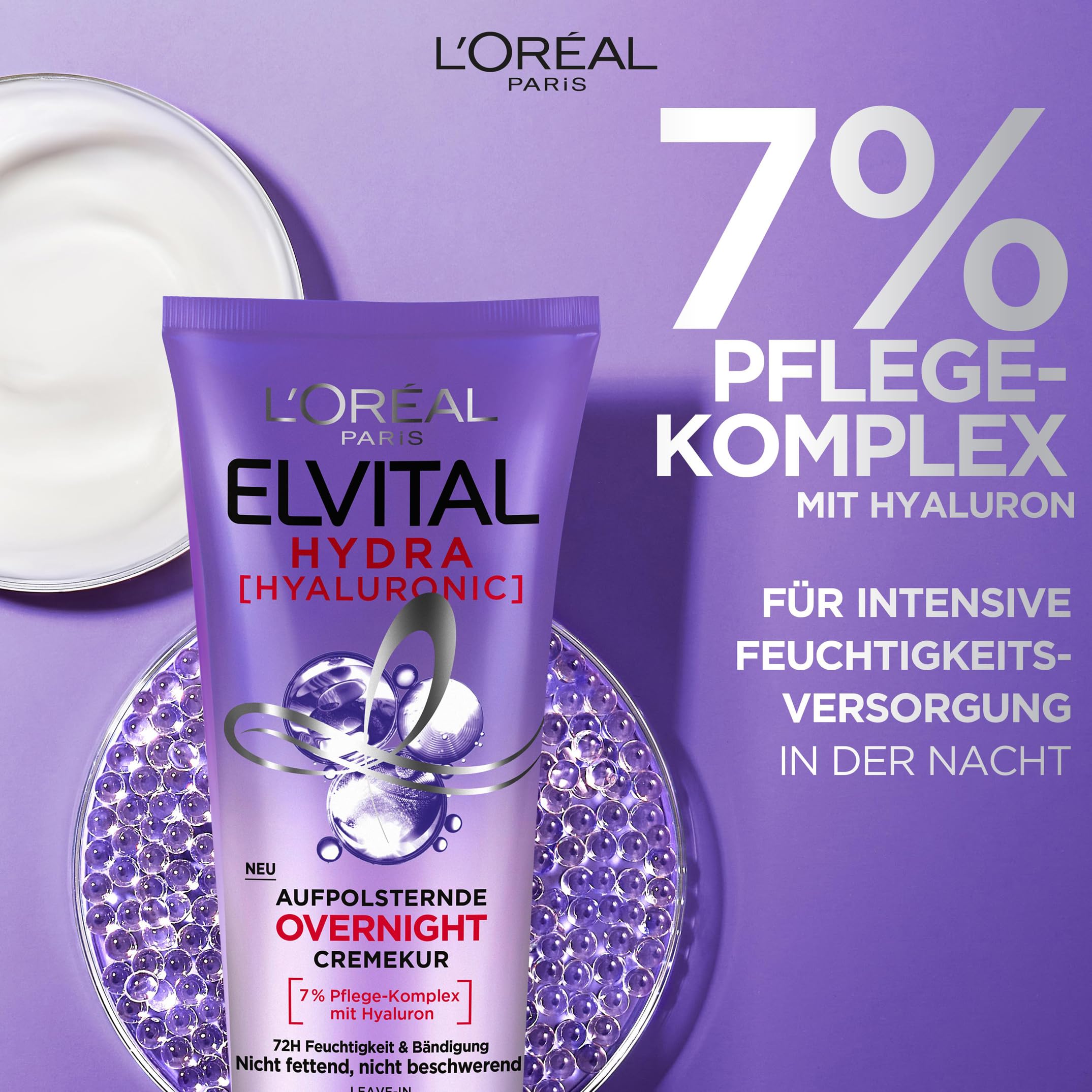 L'Oréal Paris Elvital Hydra Hyaluronic feuchtigkeitsspendende Haarmaske für glänzendes Haar, Leave In für einen Feuchtigkeitsboost & Schutz über Nacht, langanhaltende Feuchtigkeit und Pflege, 200ml