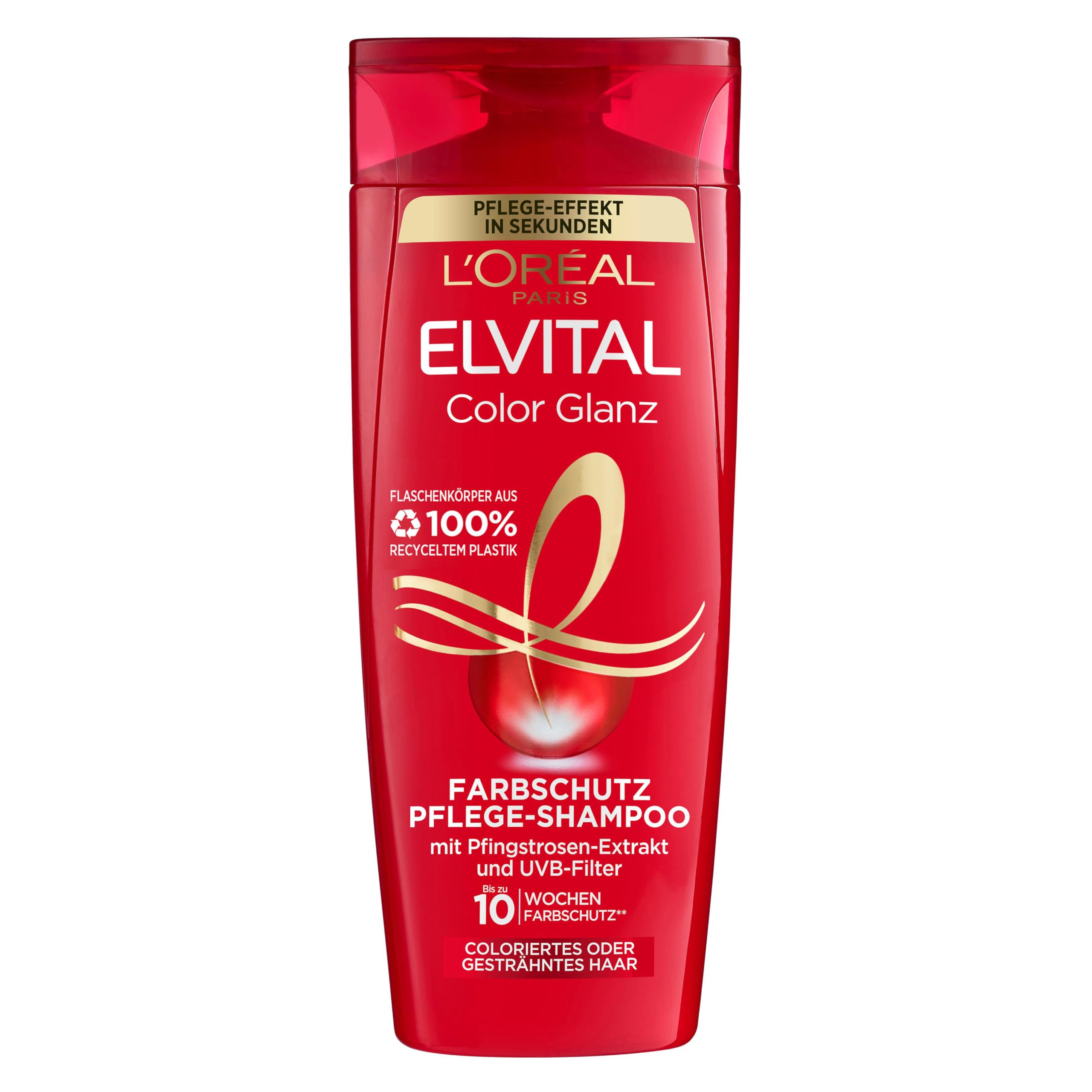 L'Oréal Paris Elvital Farbschutz Shampoo für coloriertes, getöntes oder gesträhntes Haar, Mit Pfingstrosen Extrakt und UVA-/UVB- Filter, Color Glanz Pflegeshampoo, 1 x 300 ml