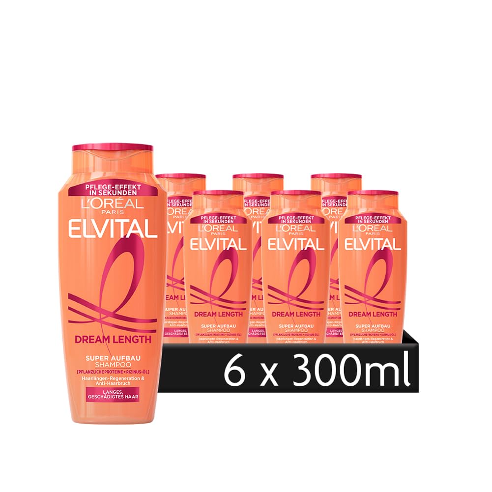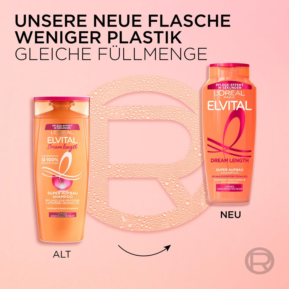 L'Oréal Paris Elvital Super Aufbau Shampoo gegen Spliss, Gepflegte & glänzende Haare, Für brüchiges & trockenes Haar, Dream Length, 1 x 300 ml