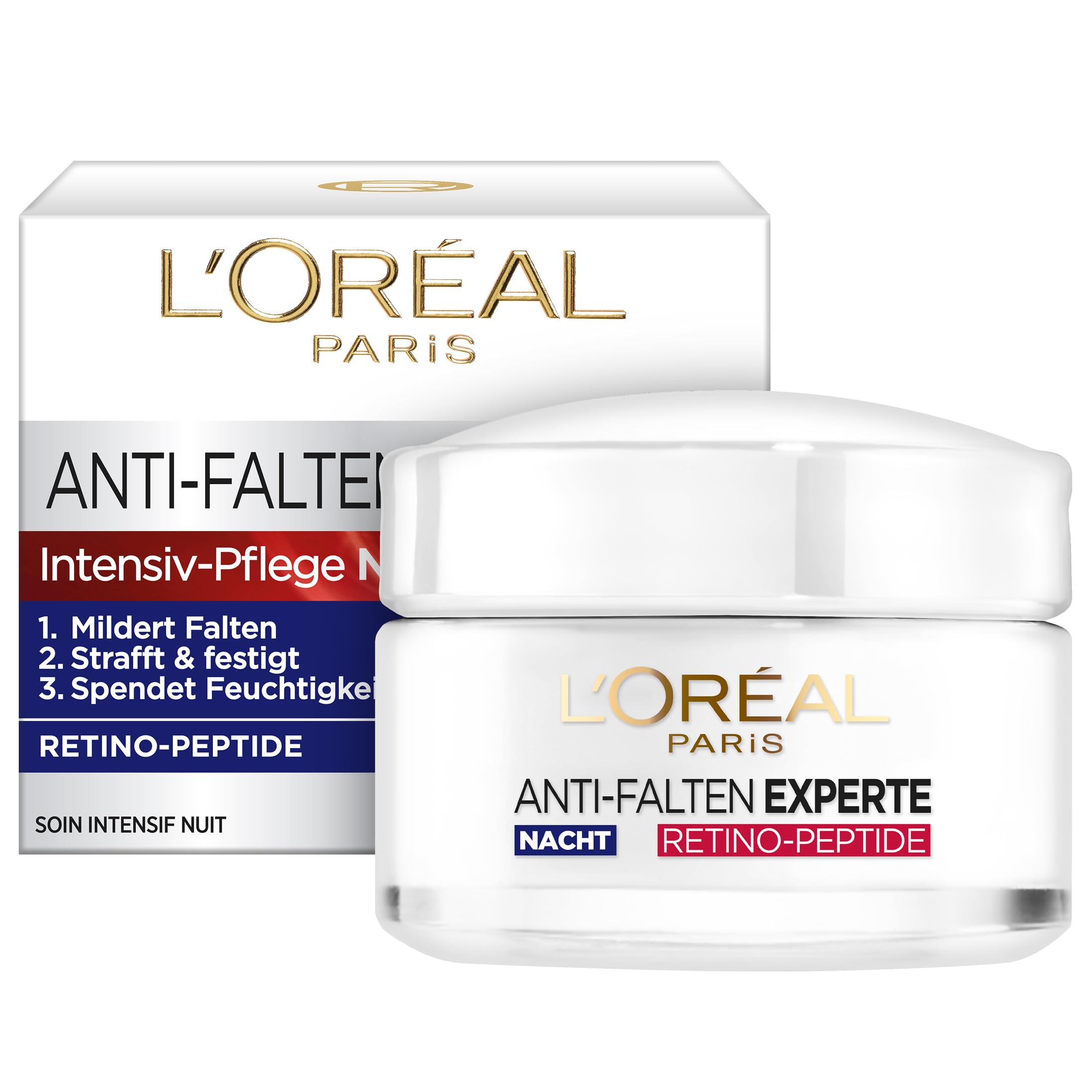 L'Oréal Paris Anti-Falten Experte 45+ Nachtpflege (50ml) – Straffende Nachtcreme mit Retino-Peptiden – Anti-Aging Feuchtigkeitspflege gegen Falten