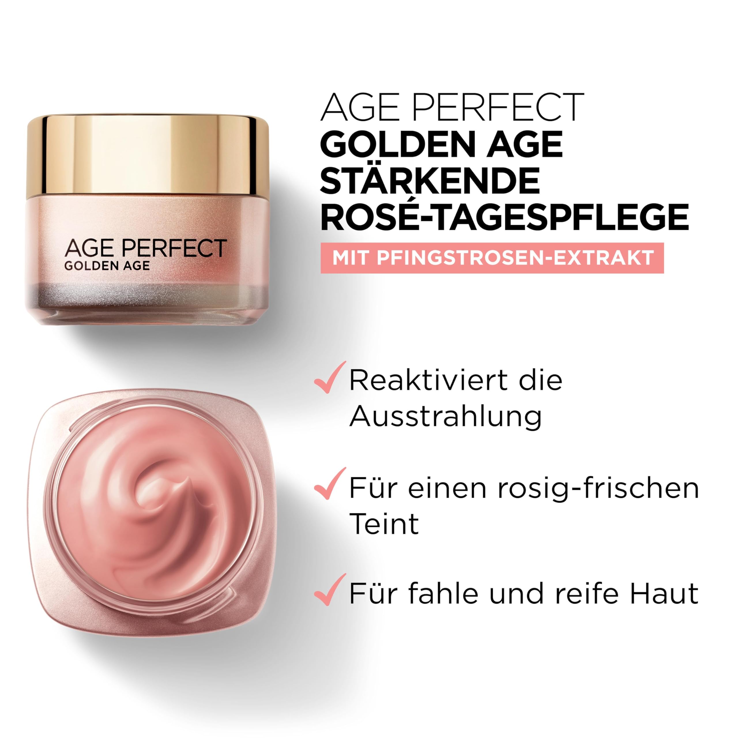 L'Oréal Paris Gesichtspflege Set, Age Perfect Golden Age, Anti-Aging Tagespflege und Nachtpflege, Festigung und Glanz, Für reife und fahle Haut, Mit Pfingstrosen-Extrakt, 2 x 50 ml