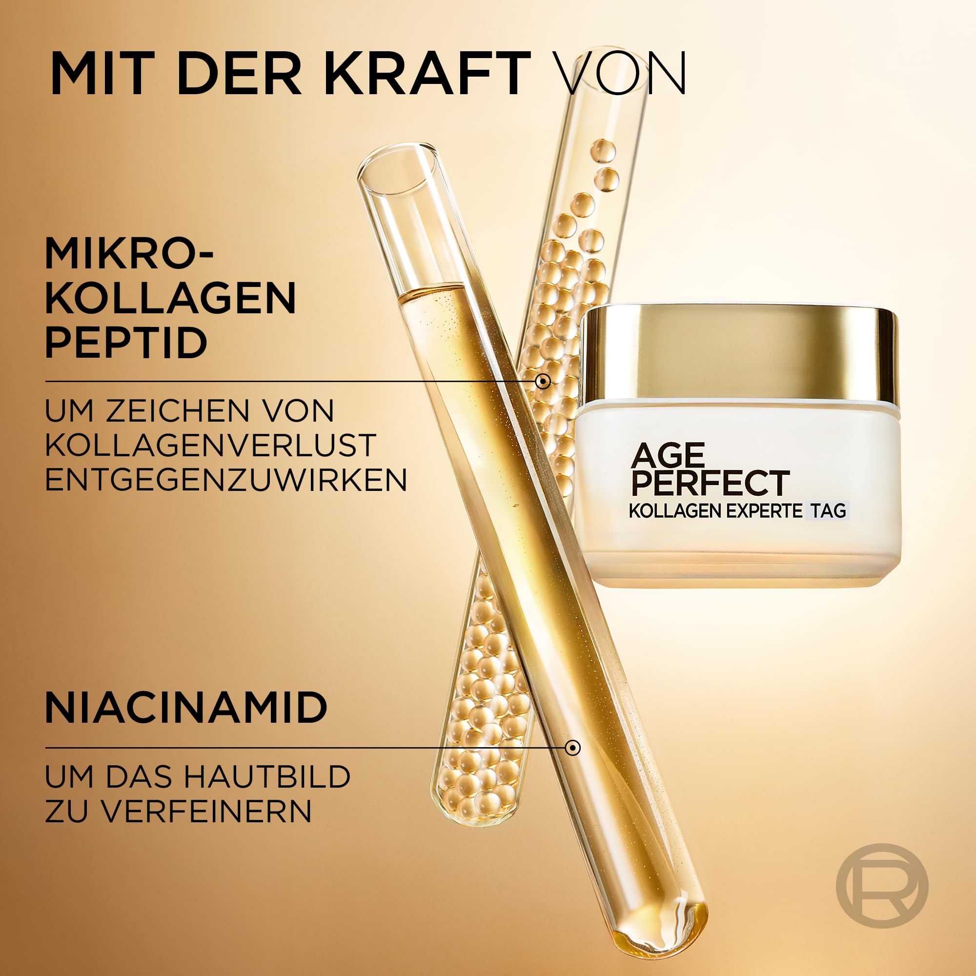 L'Oréal Paris Kollagen Gesichtspflegeset, Anti-Aging Tag und Nacht Feuchtigkeitspflege für straffere Haut, mit Kollagen-Peptid, Age Perfect Kollagen Experte Gesichtscremes, 2 x 50ml