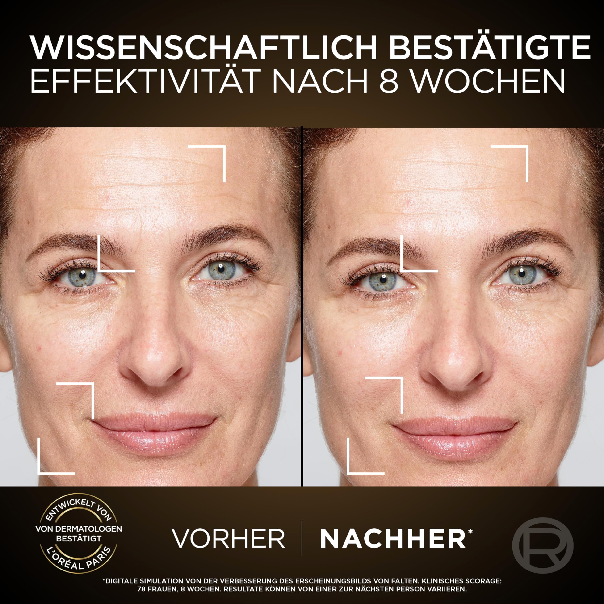- Nach 4 Wochen: Falten werden sichtbar gemildert, die Haut wirkt fester und revitalisiert.