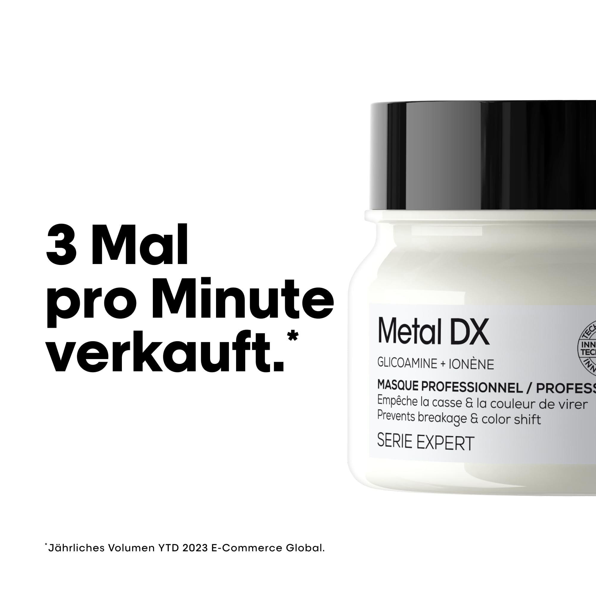 L'Oréal Professionnel Haarmaske für langanhaltende Farben, weniger Haarbruch und mehr Glanz, für alle Haartypen, Serie Expert, Metal DX Maske