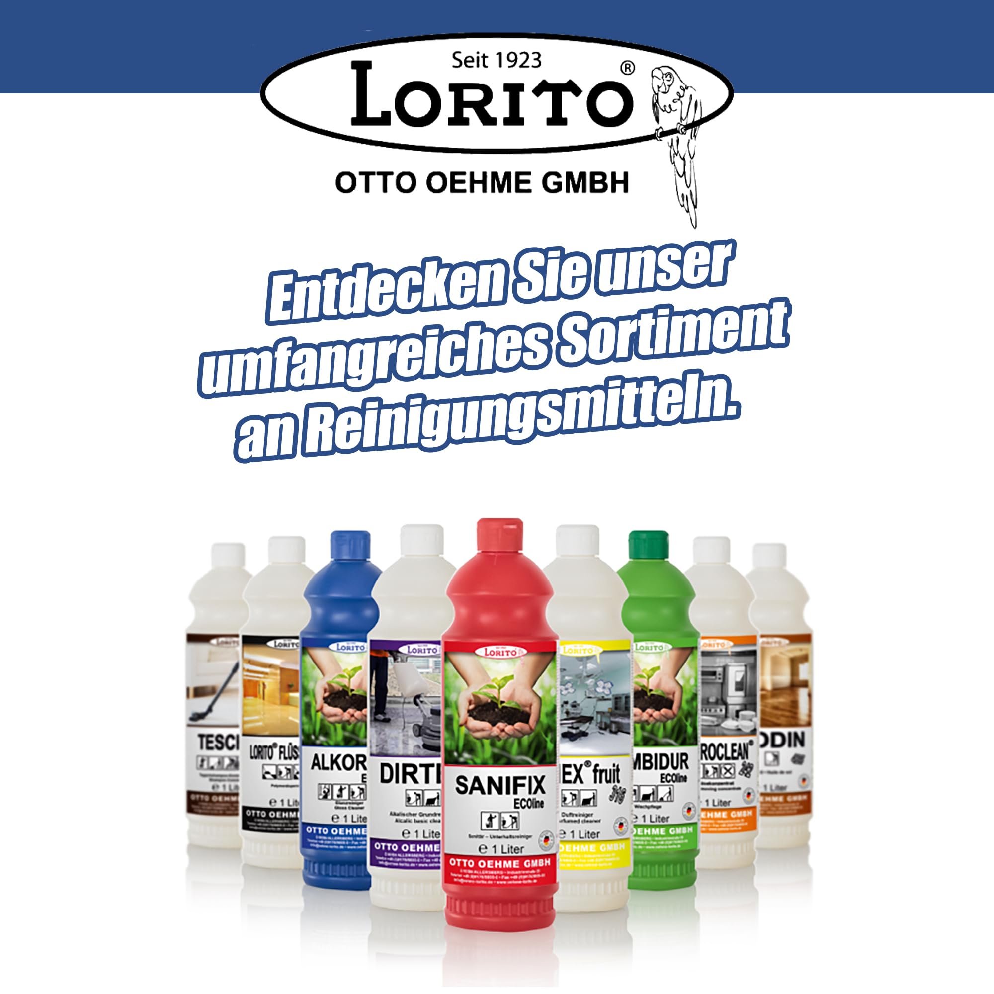 • LORITO: Lorito produziert und vertreibt seit 1923 hochwertige Reinigungsmittel für den professionellen, gewerblichen Kunden. Wir sind Ihr Spezialist für professionellen Reinigungsbedarf und Reinigungsmittel.
