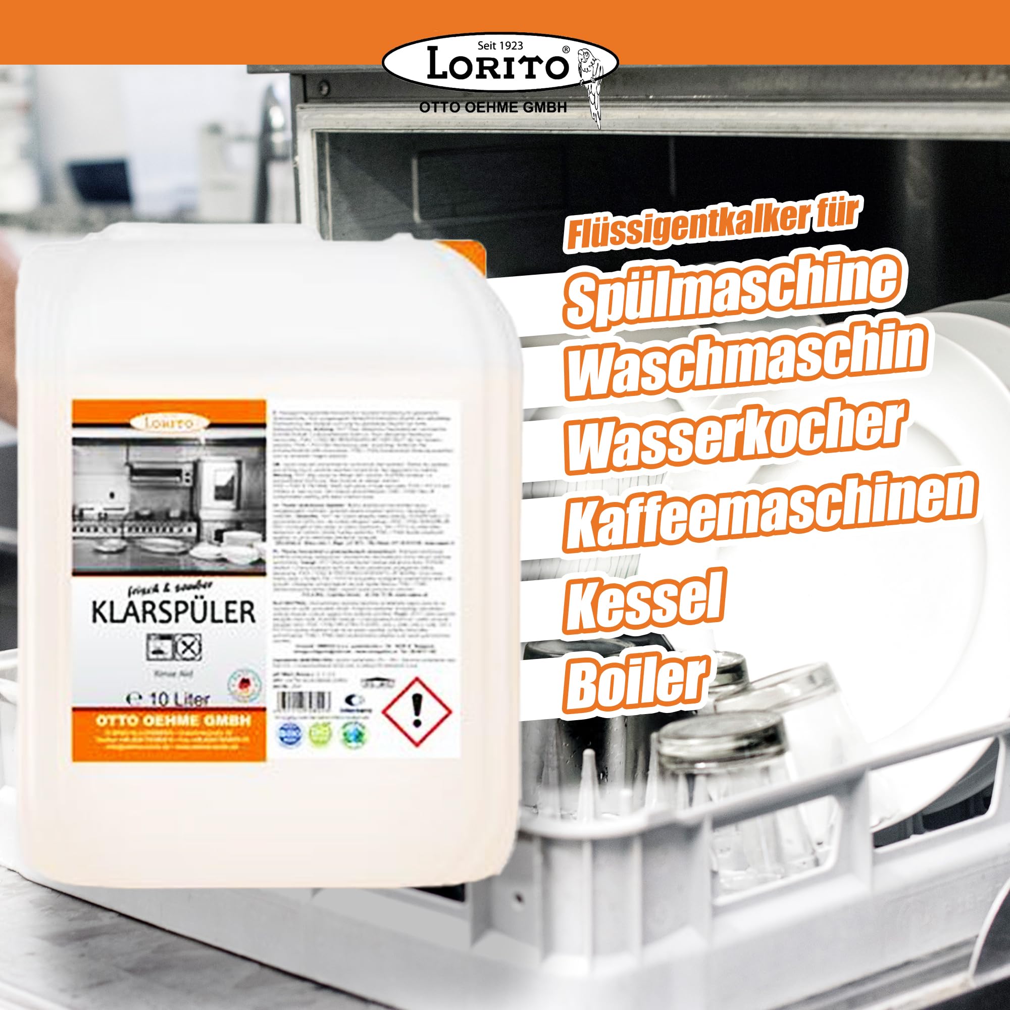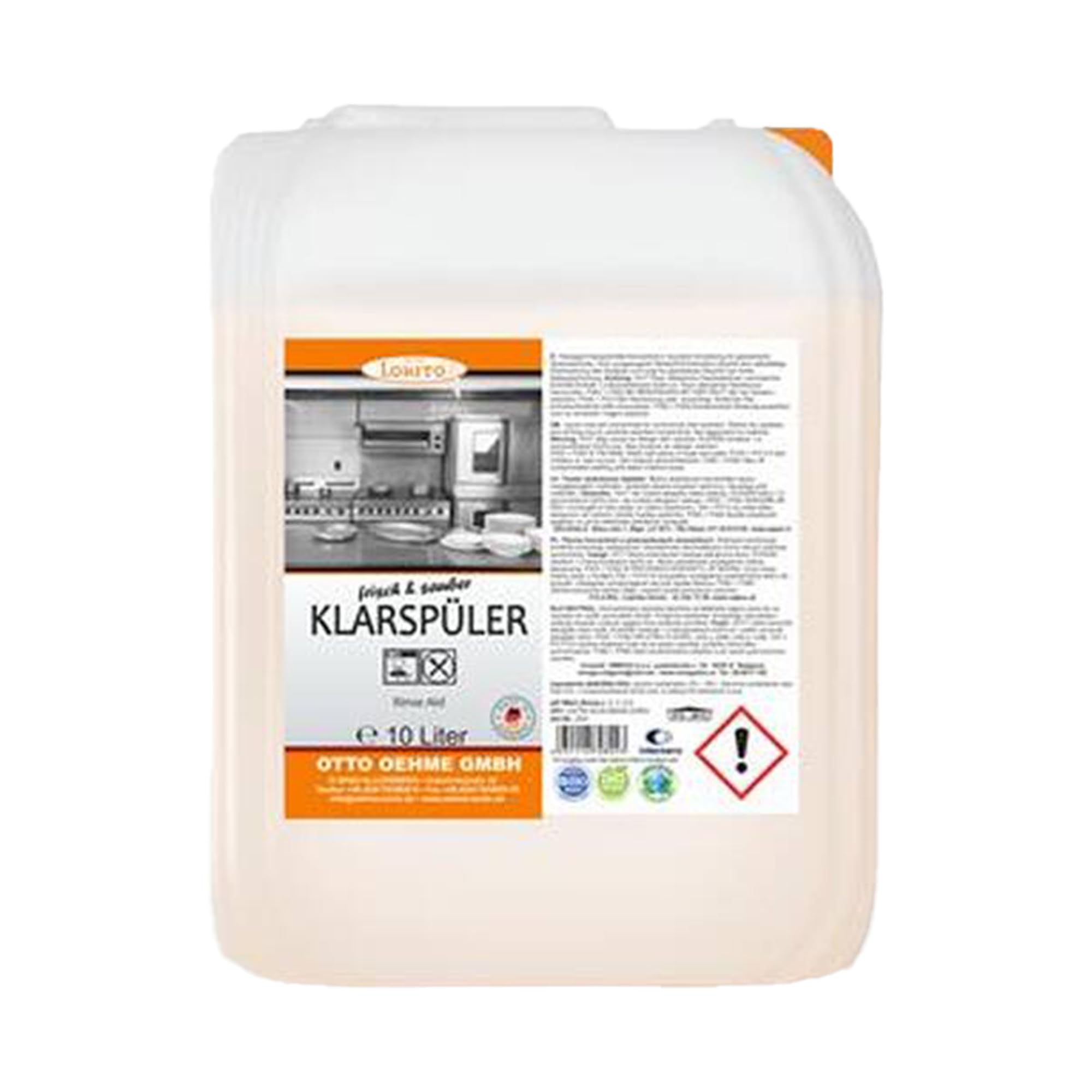 Lorito frisch & sauber Klarspüler Spülmaschine, Entkalker Gastro Geschirrspülmaschine, materialschonend, glanzerhaltend, 10 Liter Kanister