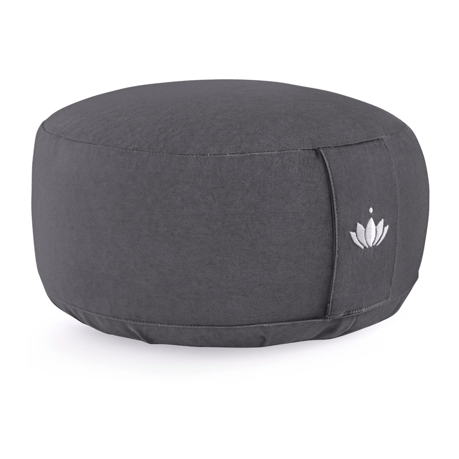 LOTUSCRAFTS® Meditationskissen mit 15cm Sitzhöhe, bestickt, Yoga Kissen mit Dinkelfüllung, Yogakissen Rund, Bodenkissen Rund, Yogakissen Meditationskissen, Yogakissen Bezug waschbar, GOTS zertifiziert