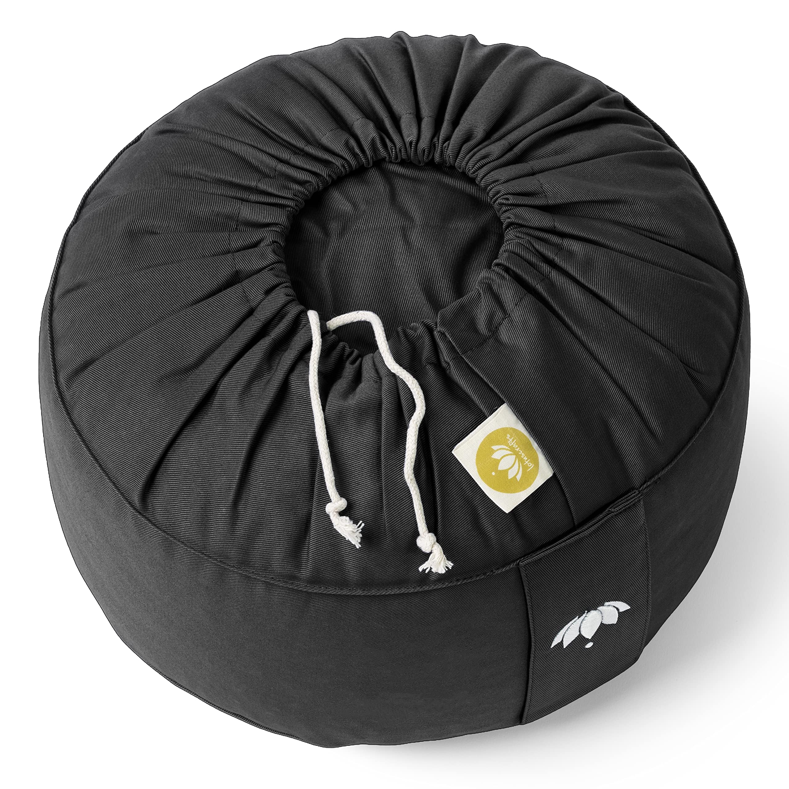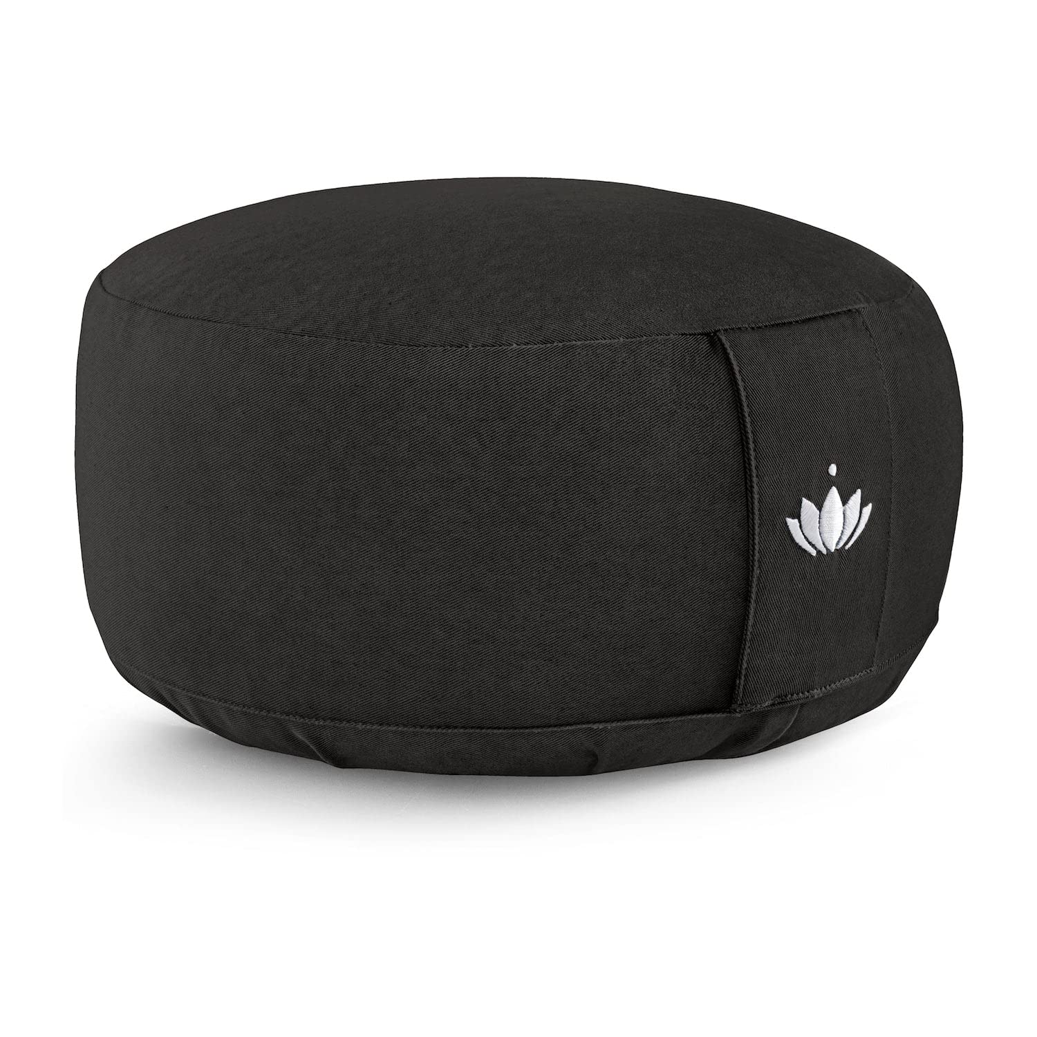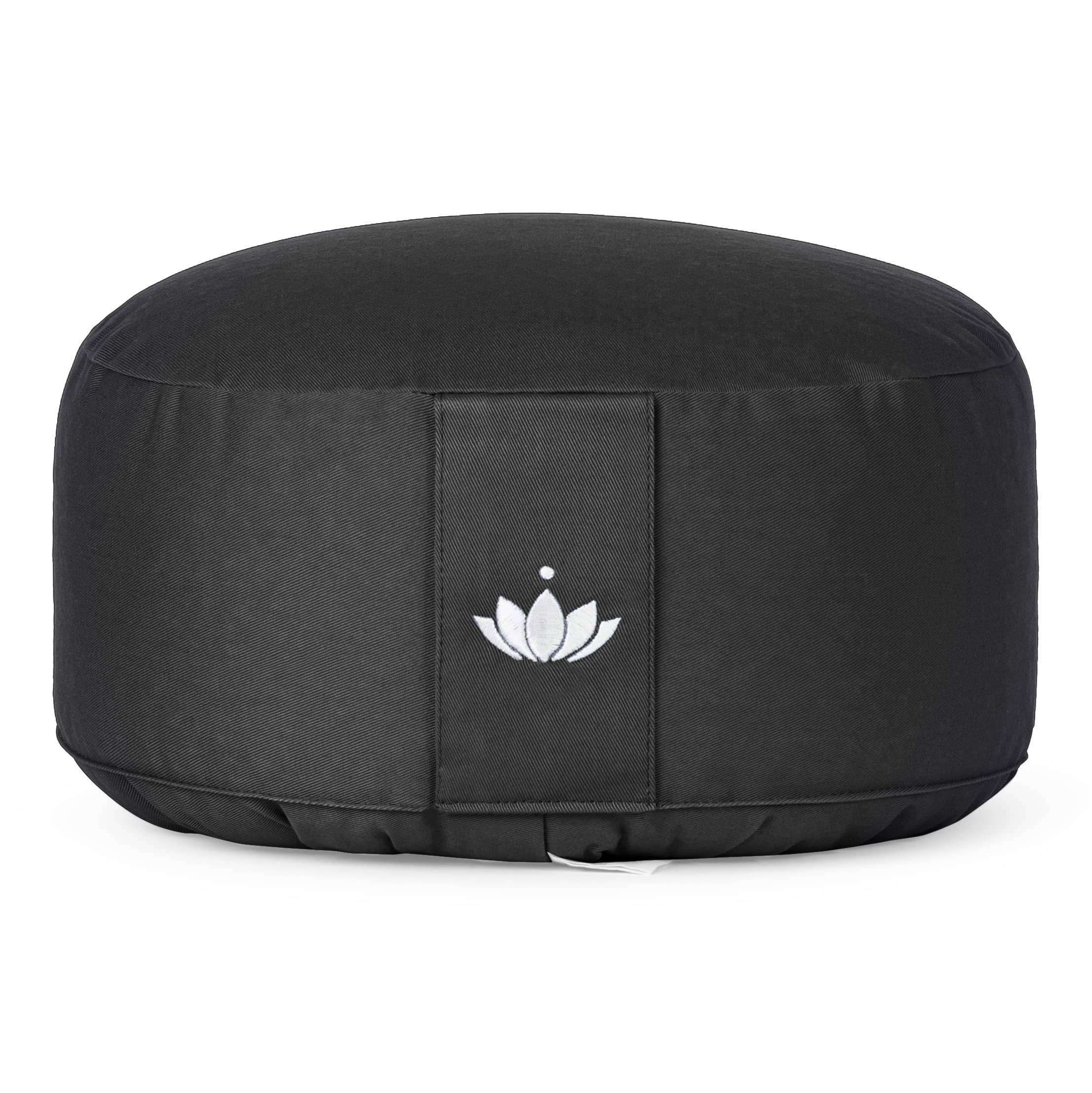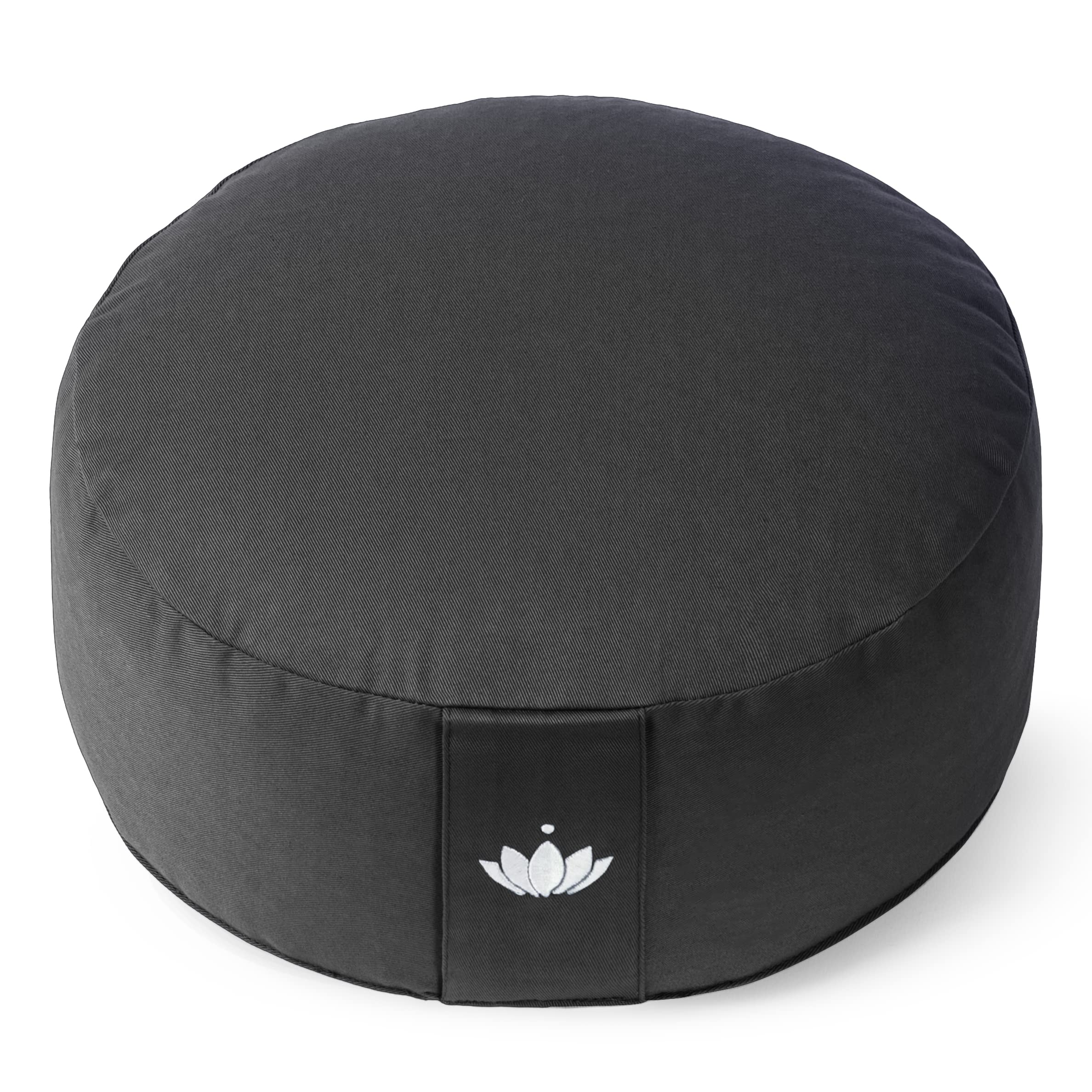 Lotuscrafts Yogakissen Meditationskissen Rund Lotus - Sitzhöhe 15cm - Waschbarer Bezug aus Baumwolle - Yoga Sitzkissen mit Dinkelfüllung - GOTS Zertifiziert - Mit Bestickung