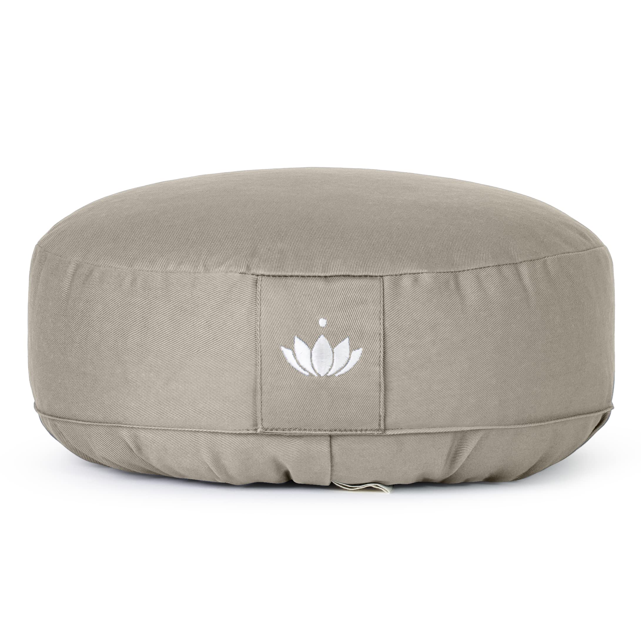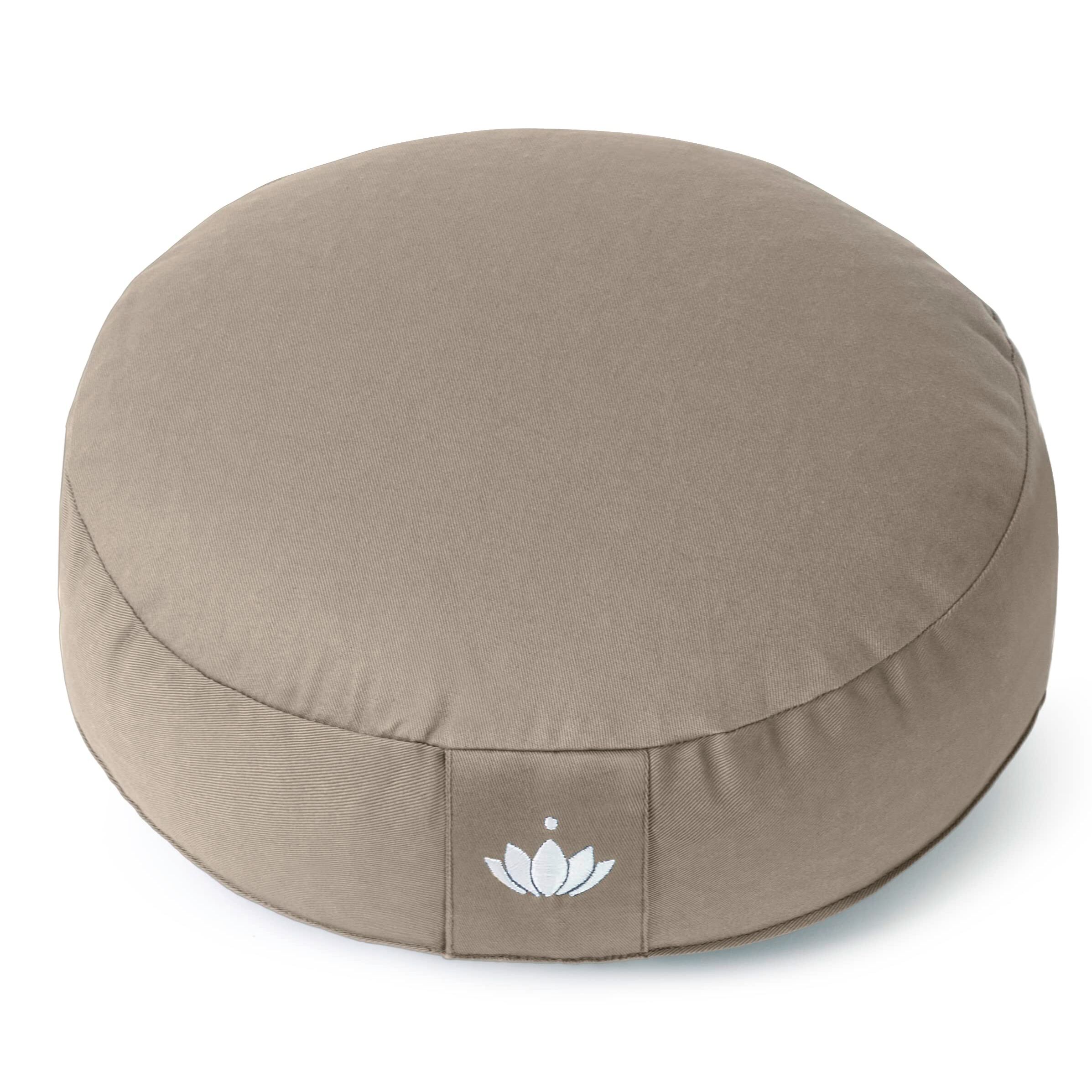Lotuscrafts® Meditationskissen mit 10 cm Sitzhöhe, extra niedrig, Yoga Kissen mit Dinkelfüllung, Yogakissen Rund, Bodenkissen Rund, Yogakissen Meditationskissen, Bezug waschbar, GOTS Zertifiziert