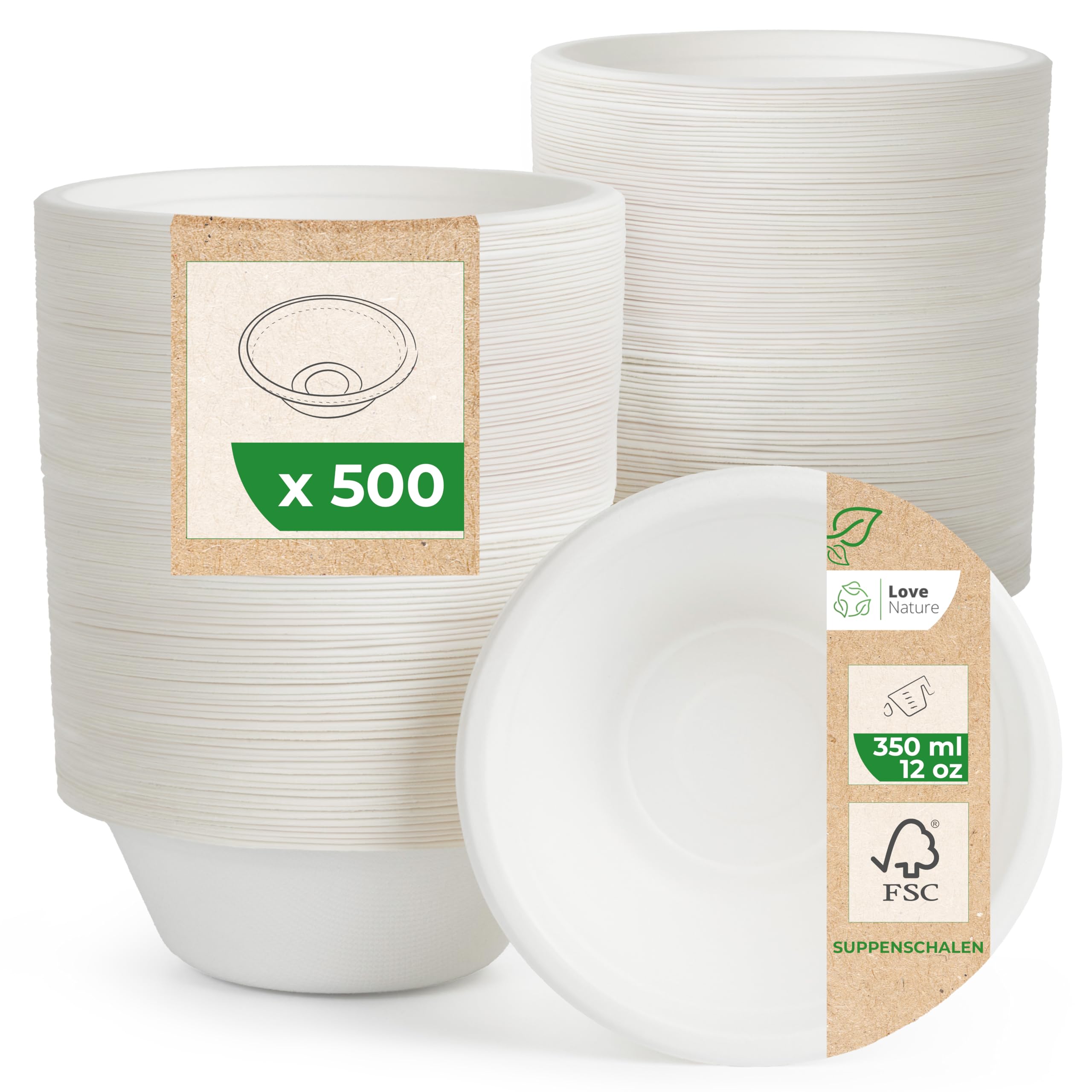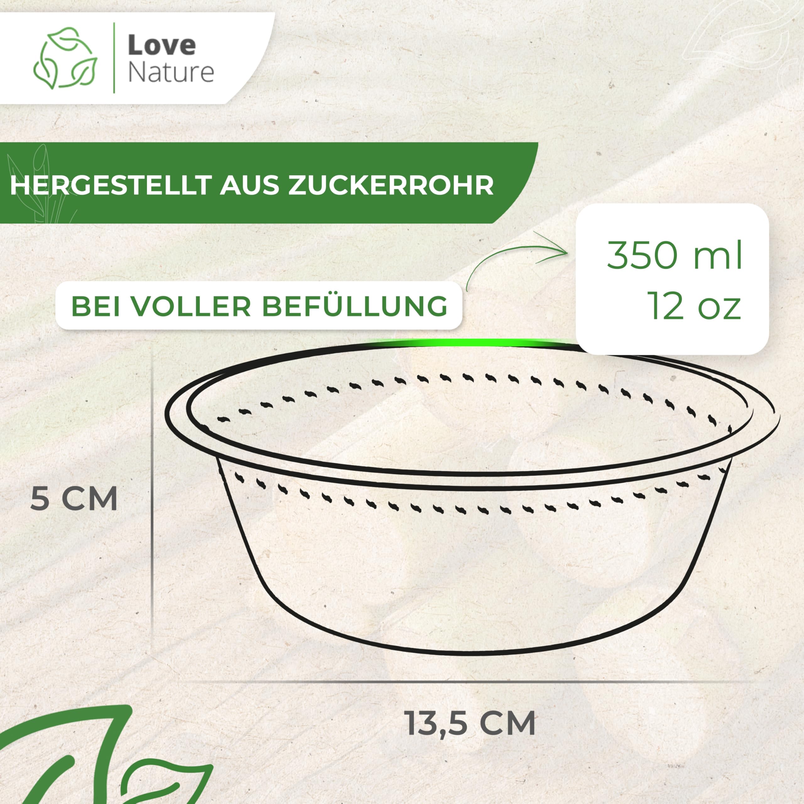 Love Nature Ökologische Einweg Suppenschalen aus Zuckerrohr Schnitzel - (350ml - 500 Stück) Suppenschüssel mit Langanhaltender Wärmespeicherung