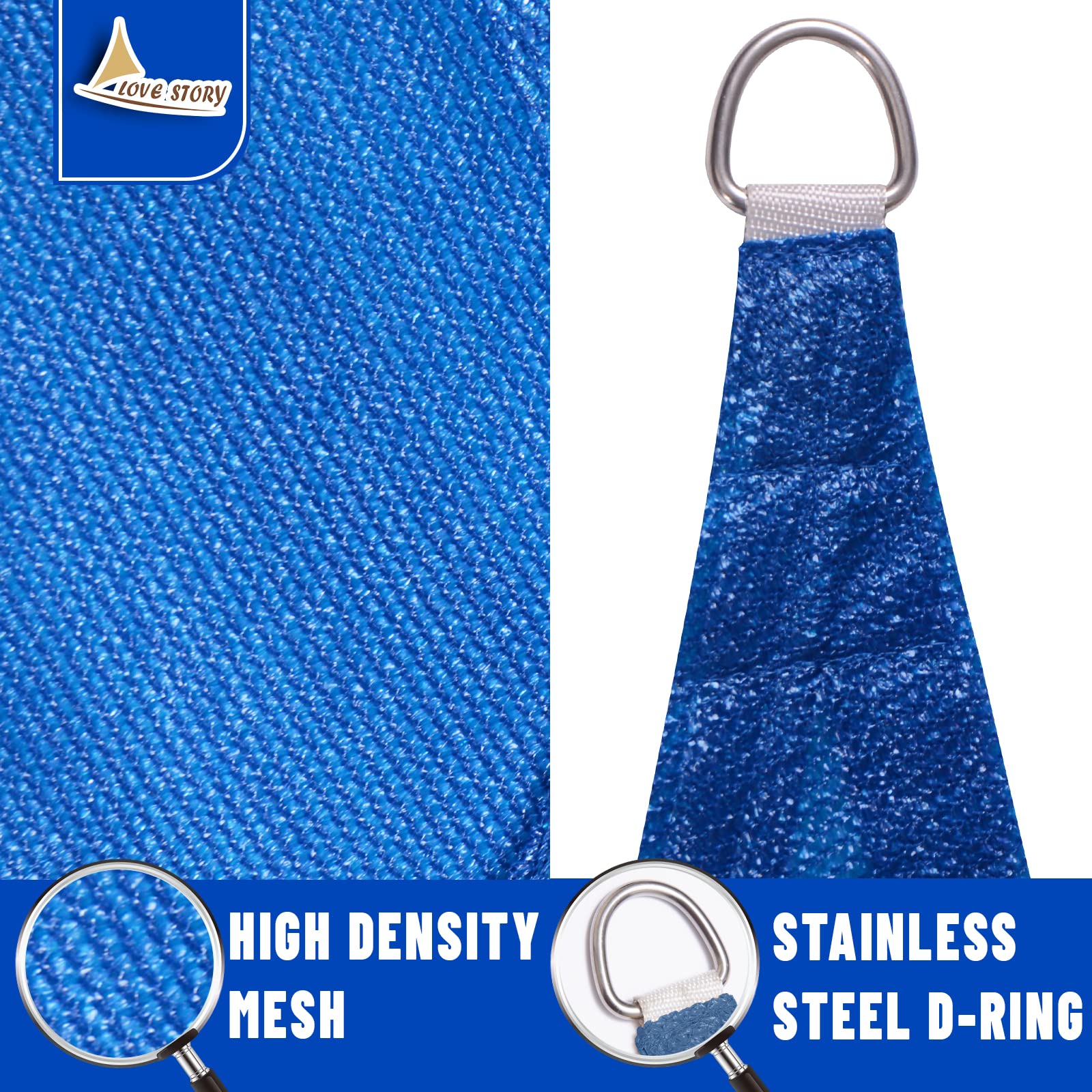 LOVE STORY Sonnensegel, dreieckig, 40 x 40 x 40 cm, Blau, UV-Schutz, Markise für Aussenbereich, Terrasse, Garten, Hinterhof